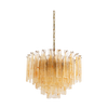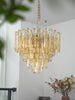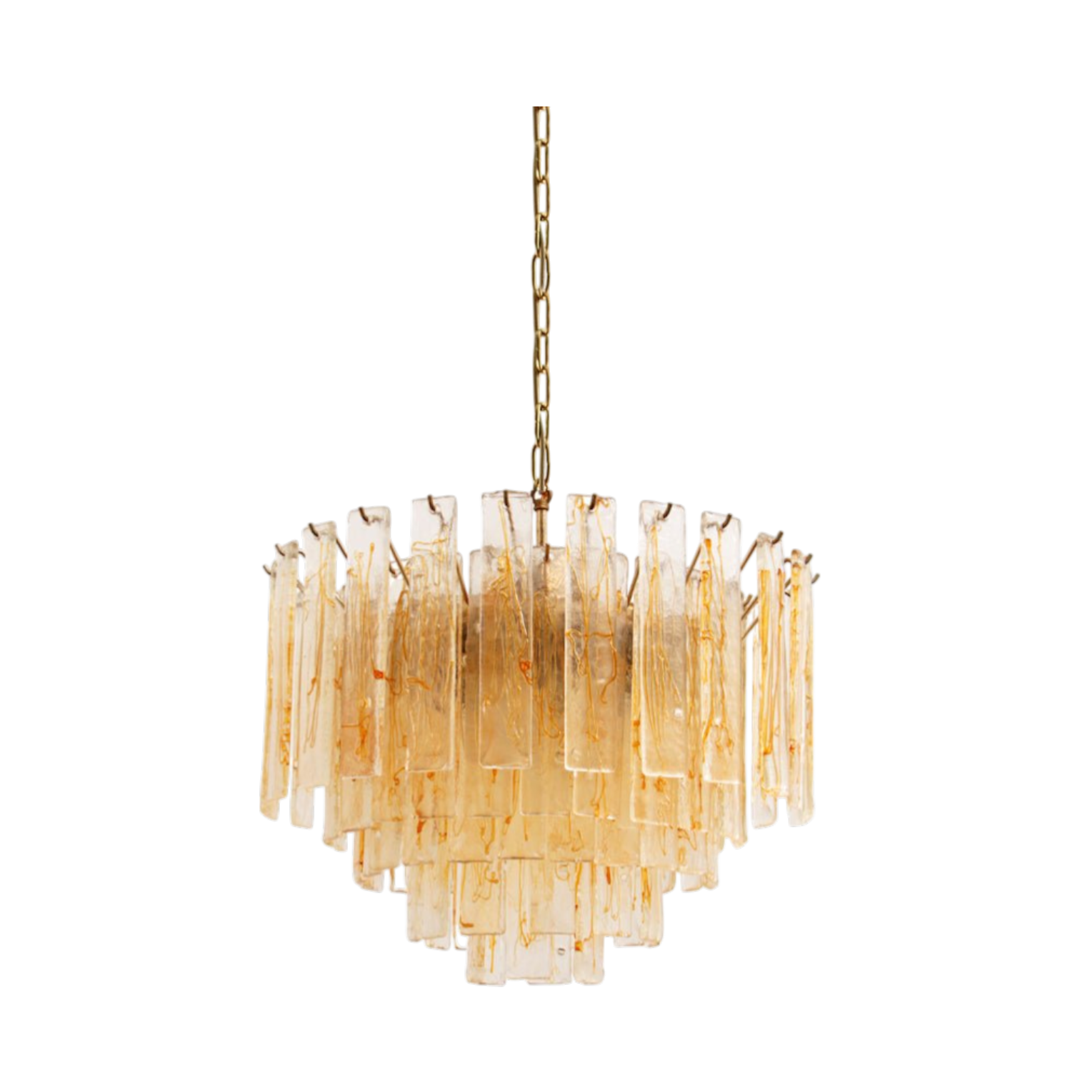 The Angelina Golden Murano Glass Chandelier by SMITH&SMITH features golden amber hue Murano glass crafted into geometric shapes that creates a luxurious look. This chandelier highlights a vintage and artistic look perfect for any space.