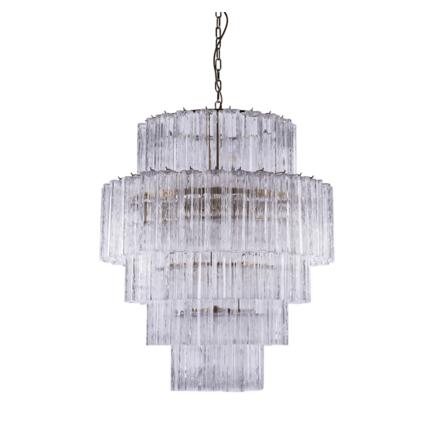 The Annalisa Murano Rina Firenze Chandelier by SMITH&SMITH features Florentine elegance with its meticulous craftsmanship of cascading hand-shaped glass prisms. The authentic textures of traditional Venetian glasswork are highlighted along with architectural precision and artisanal mastery, perfect for dining spaces or grand entryways.