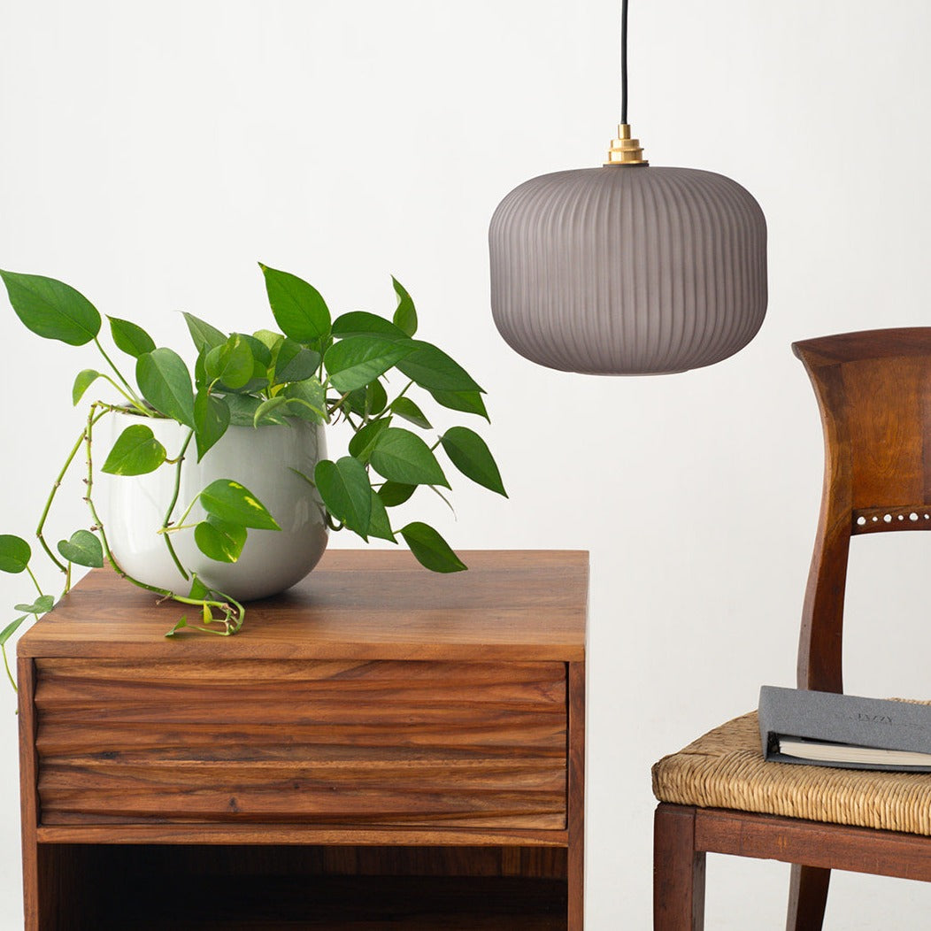 Ashter Hand-blown Lantern Pendant in Matte-Grey Glass