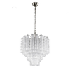 The Cristalla Murano Glass Chandelier by SMITH&SMITH features tiered textures that resemble cascading waves of light. The glass creates a ripple effect that creates an optical effect, perfect to add elegance to spaces.