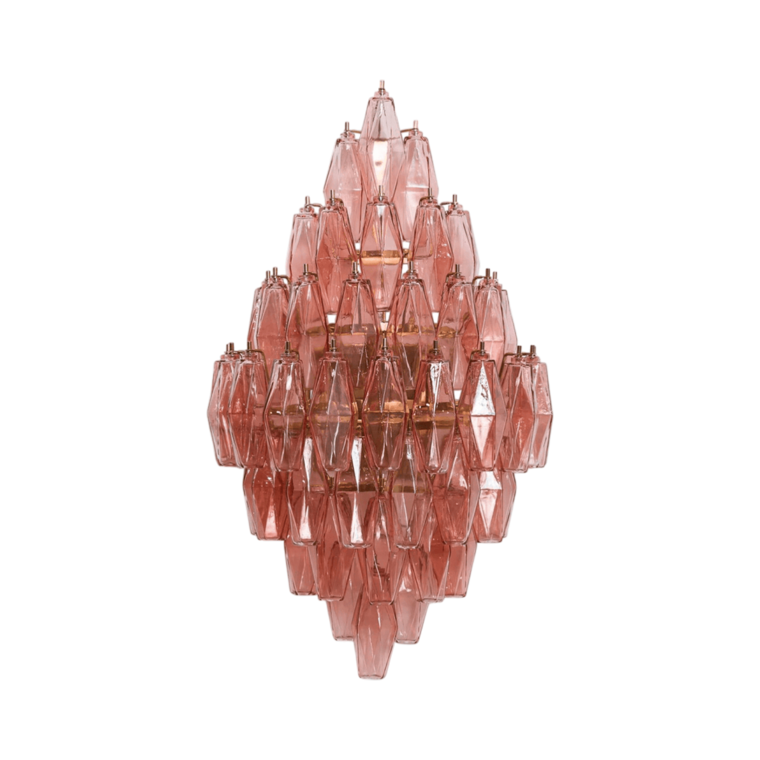 The Divina Murano Wall Light by SMITH&SMITH features a tiered diamond formation of coloured Murano glass. This vintage-inspired design brings multidimensional glow, perfect to transform any space into an elegant view.