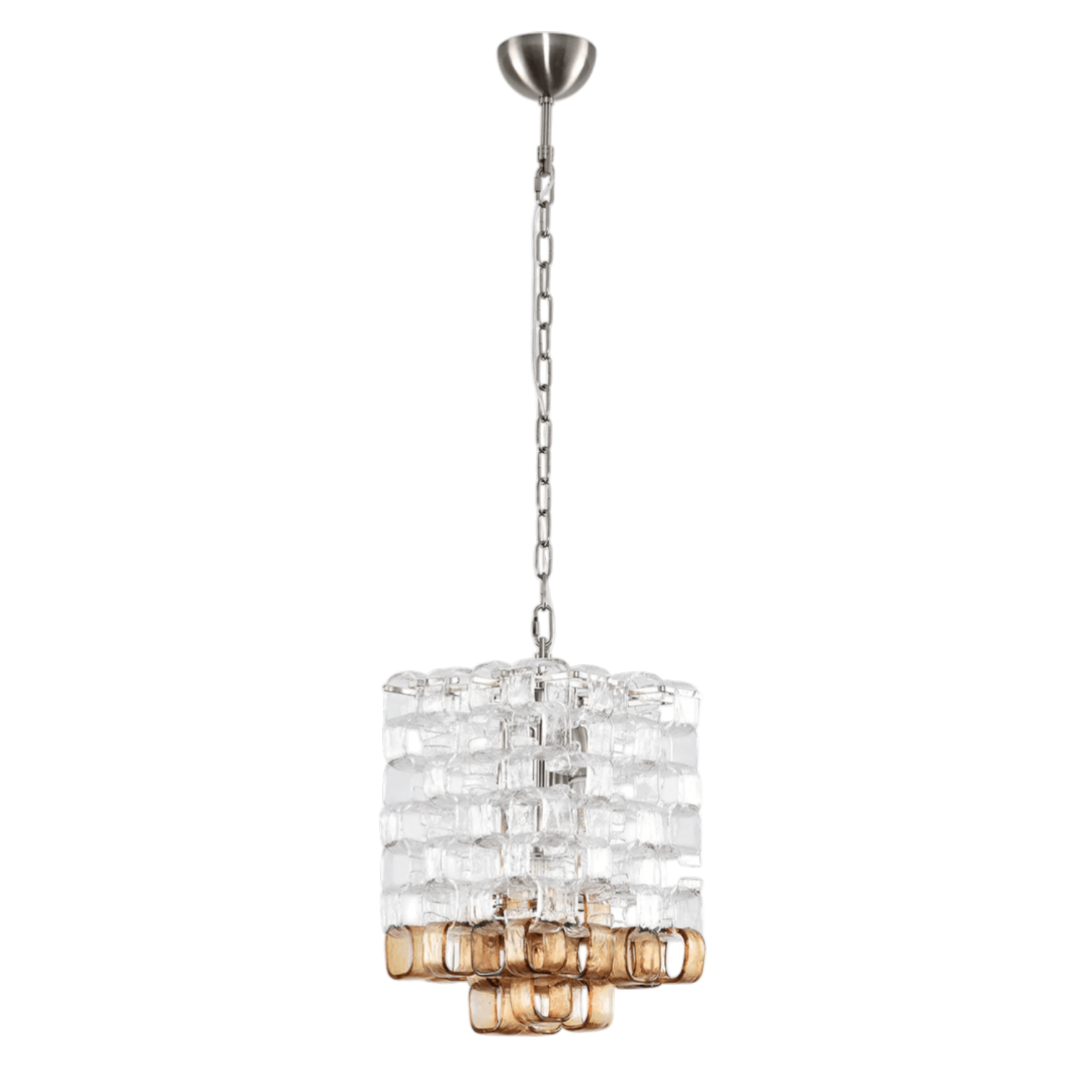 The Dominica Murano Poliarte Interlocking Chandelier by SMITH&SMITH features suspended Murano glass cups that illuminate and bring elegance to any space. It creates a stunning display of light and can be arranged individually for your preference.