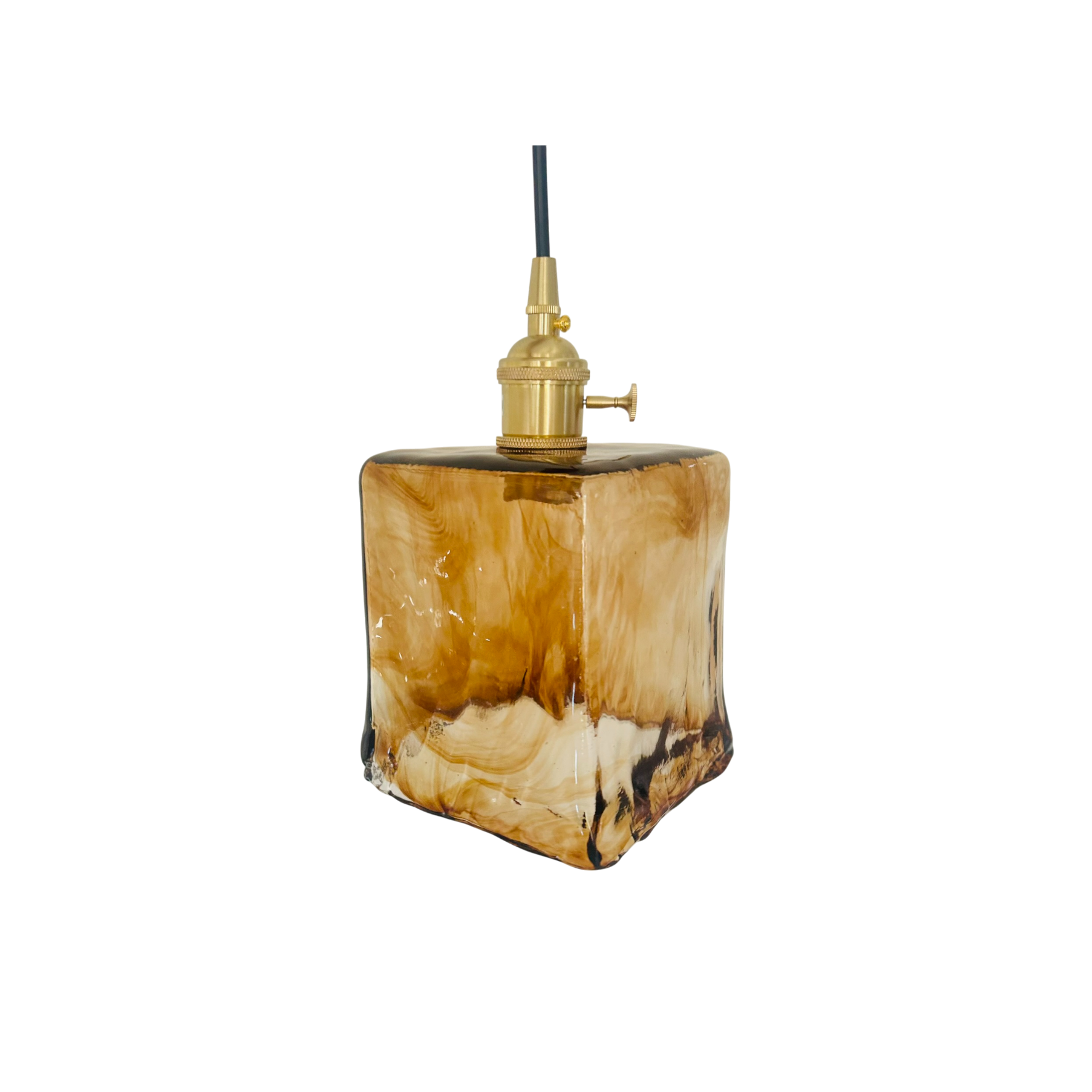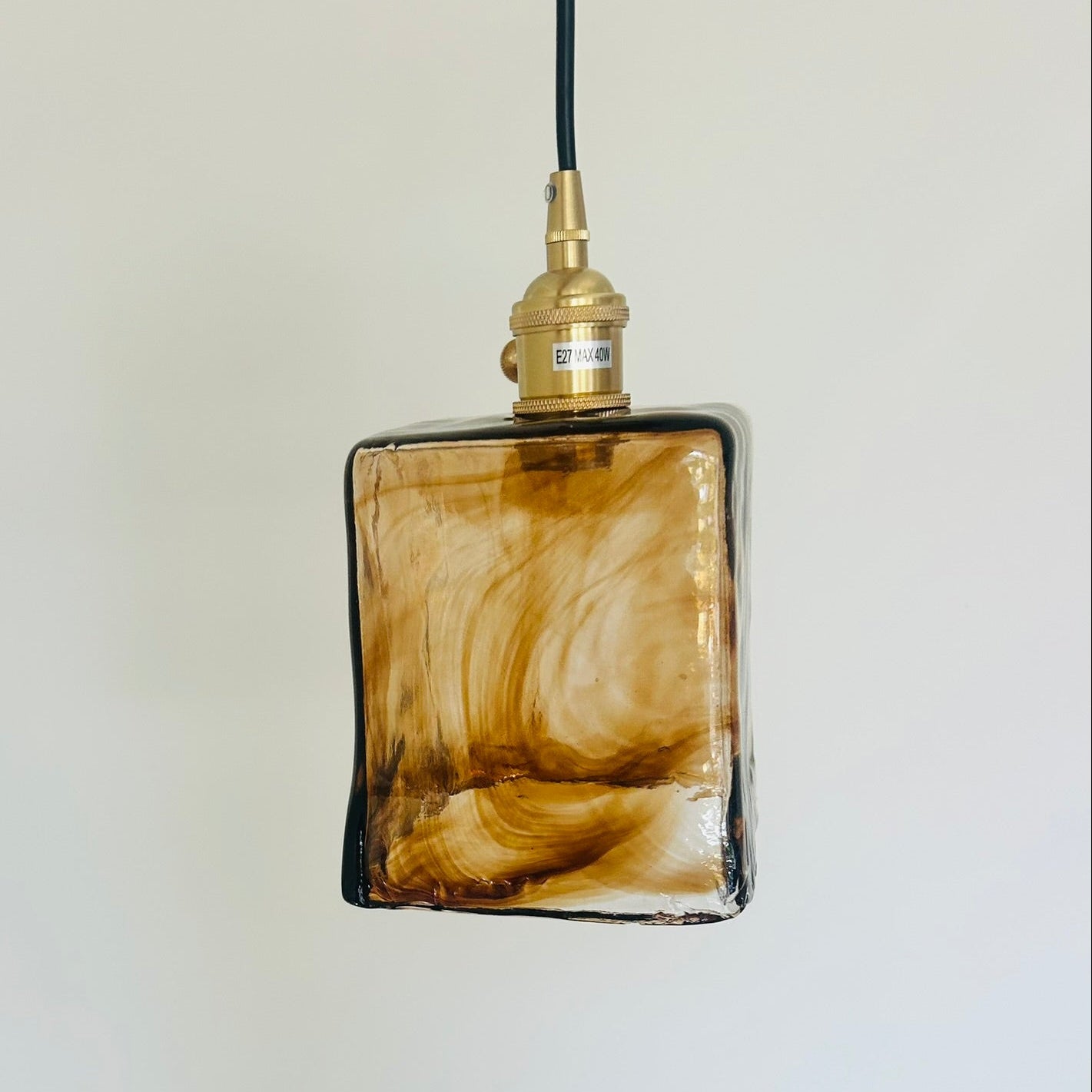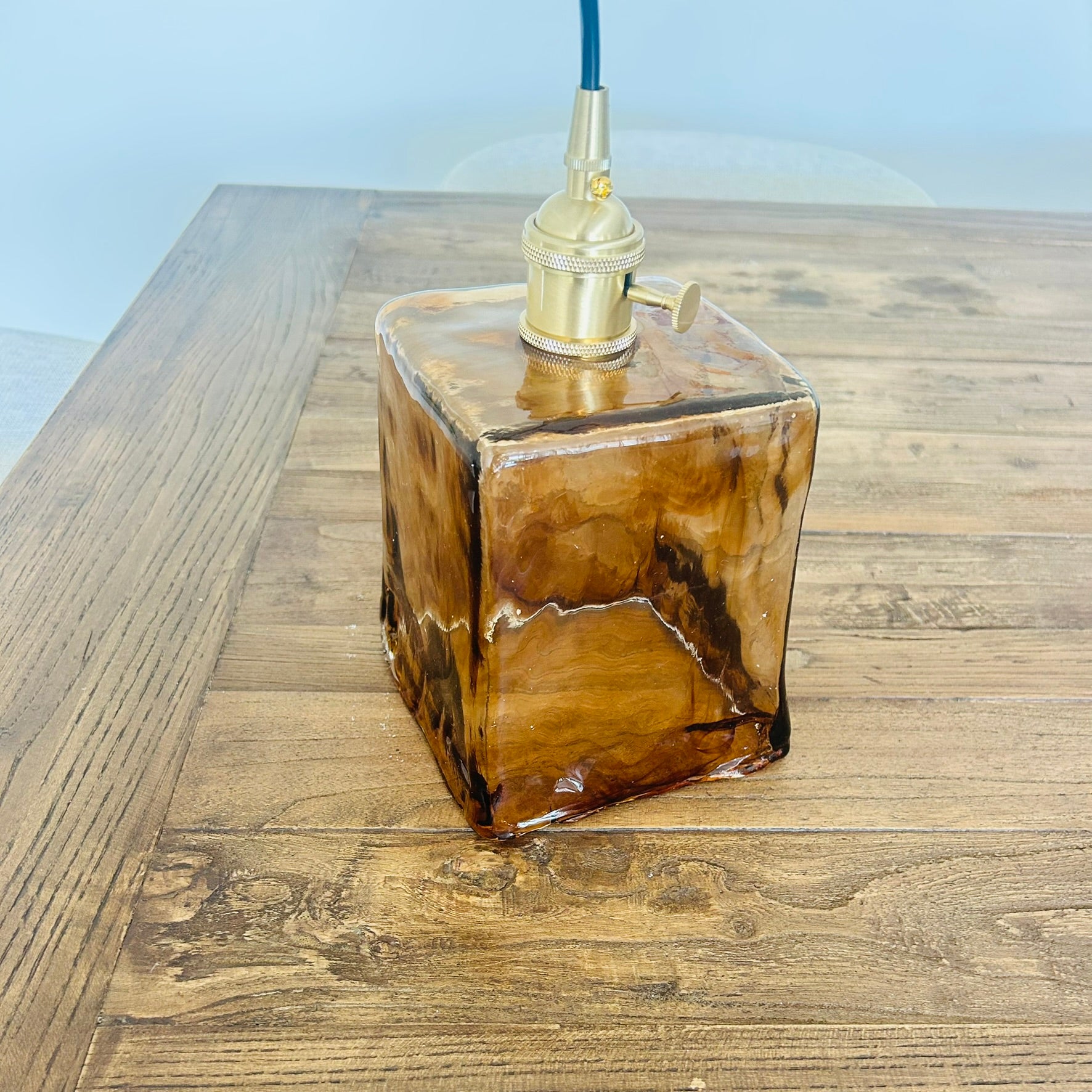 A cute organic amber glass pendant lamp available with various cord colours and styles.