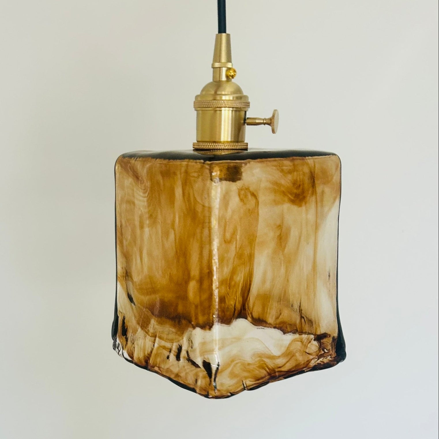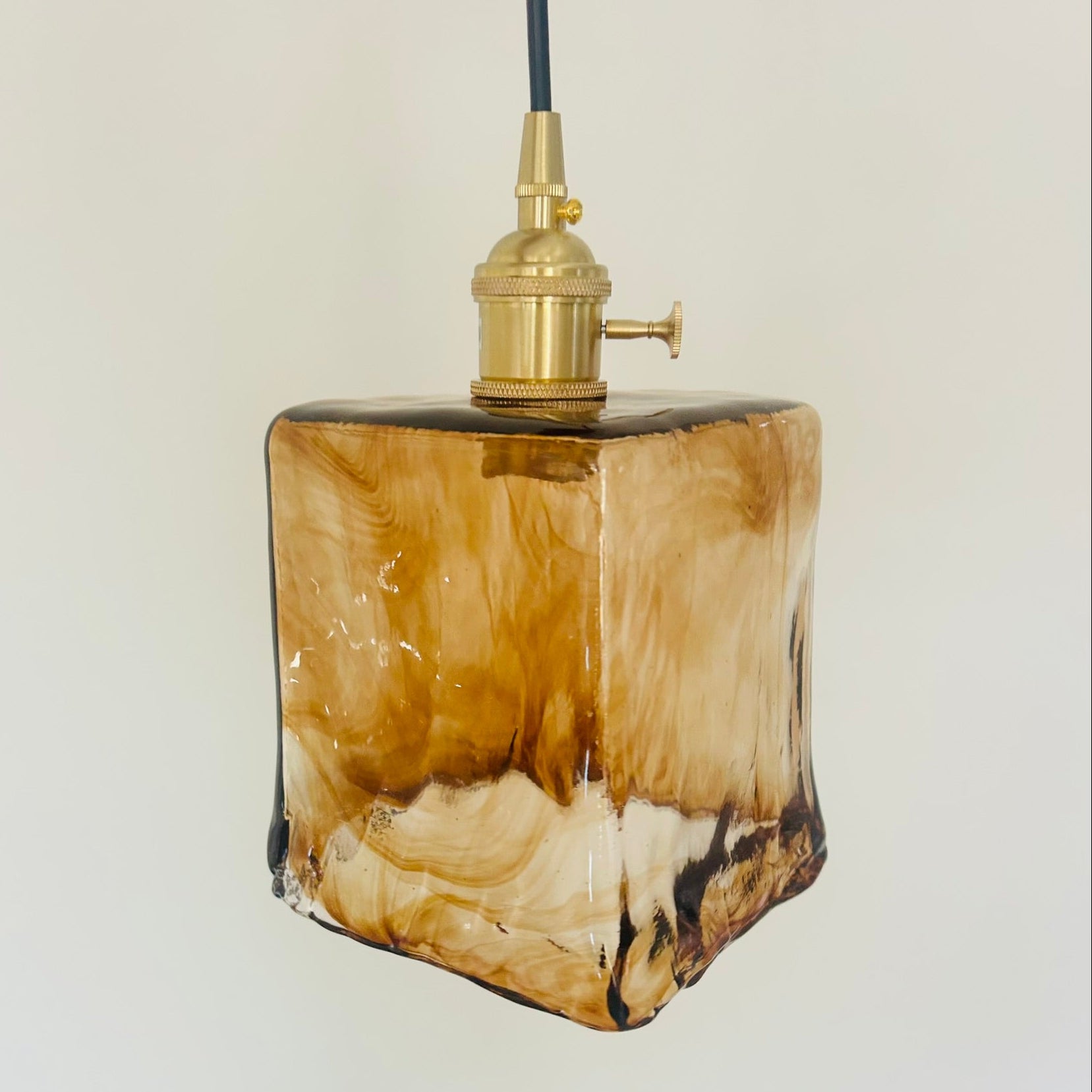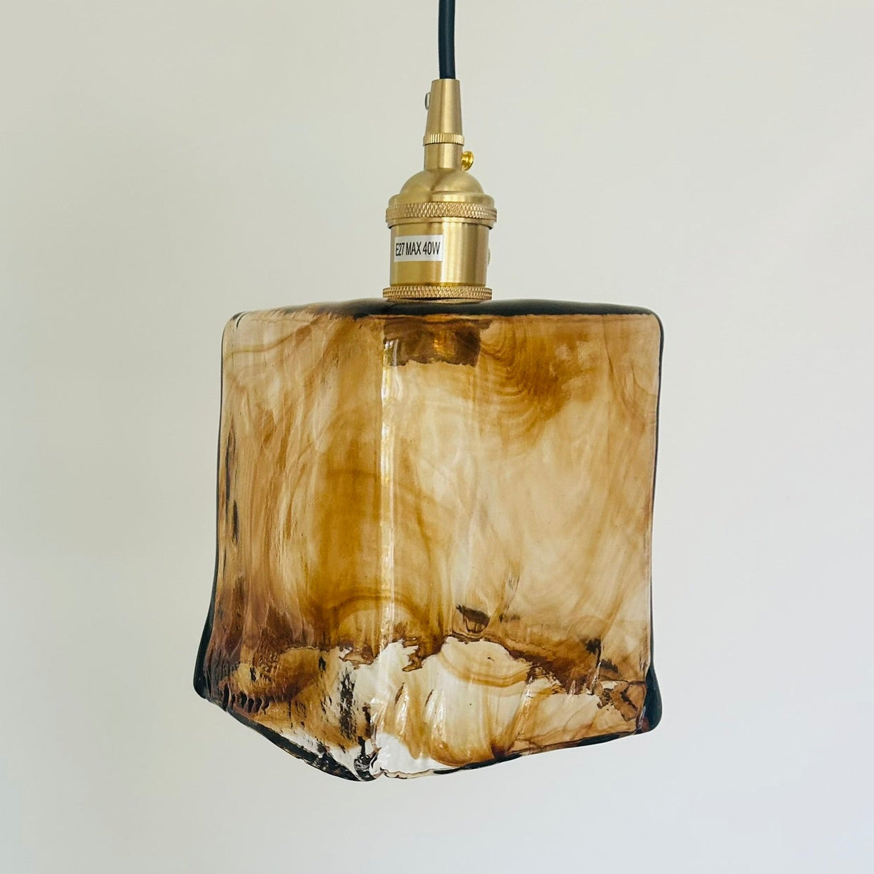 A cute organic amber glass pendant lamp available with various cord colours and styles.