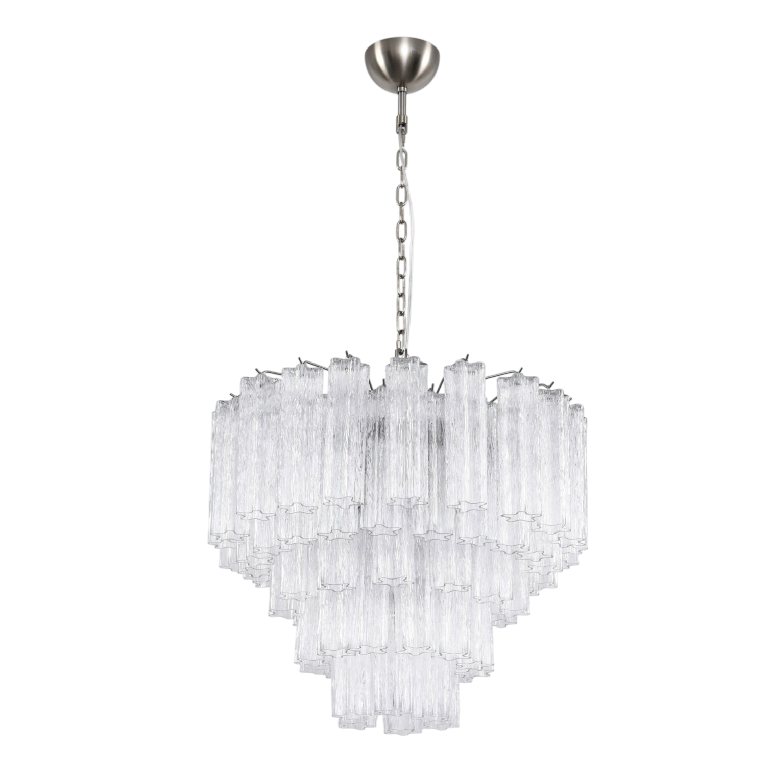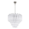 The Eleonora Murano Chandelier by SMITH&SMITH brings refined craftsmanship with timeless elegance. The tiered hand-blown glass bars with their clear icy finish are perfect for upscale interiors, dining halls and hotel spaces.