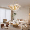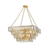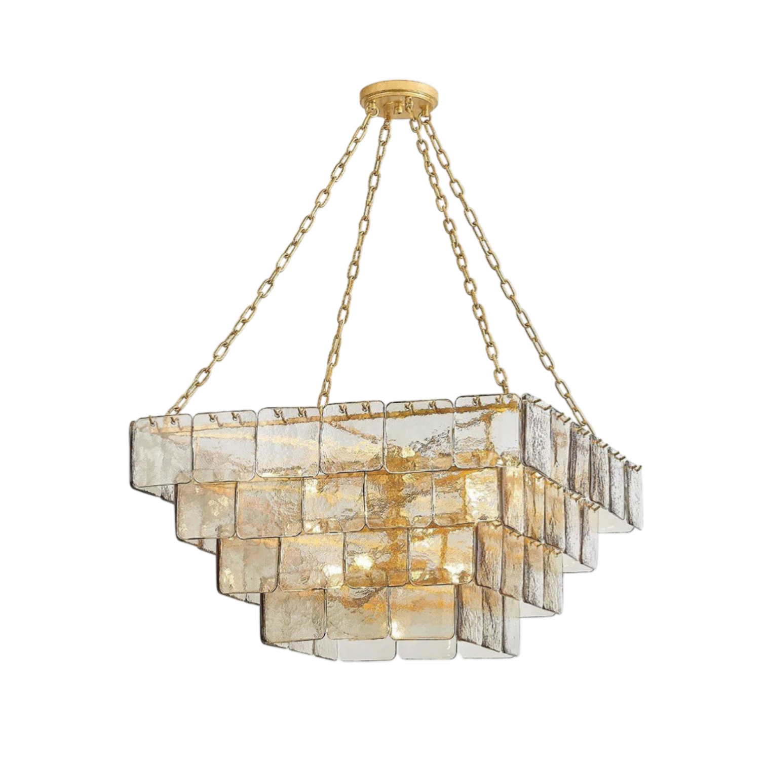 The Elisabetta Murano Chain Chandelier by SMITH&SMITH features refined elegance with a sophisticated design of three tiers of dark champagne piastre glass panels that give a captivating icy glow that enhances any interior or space.