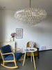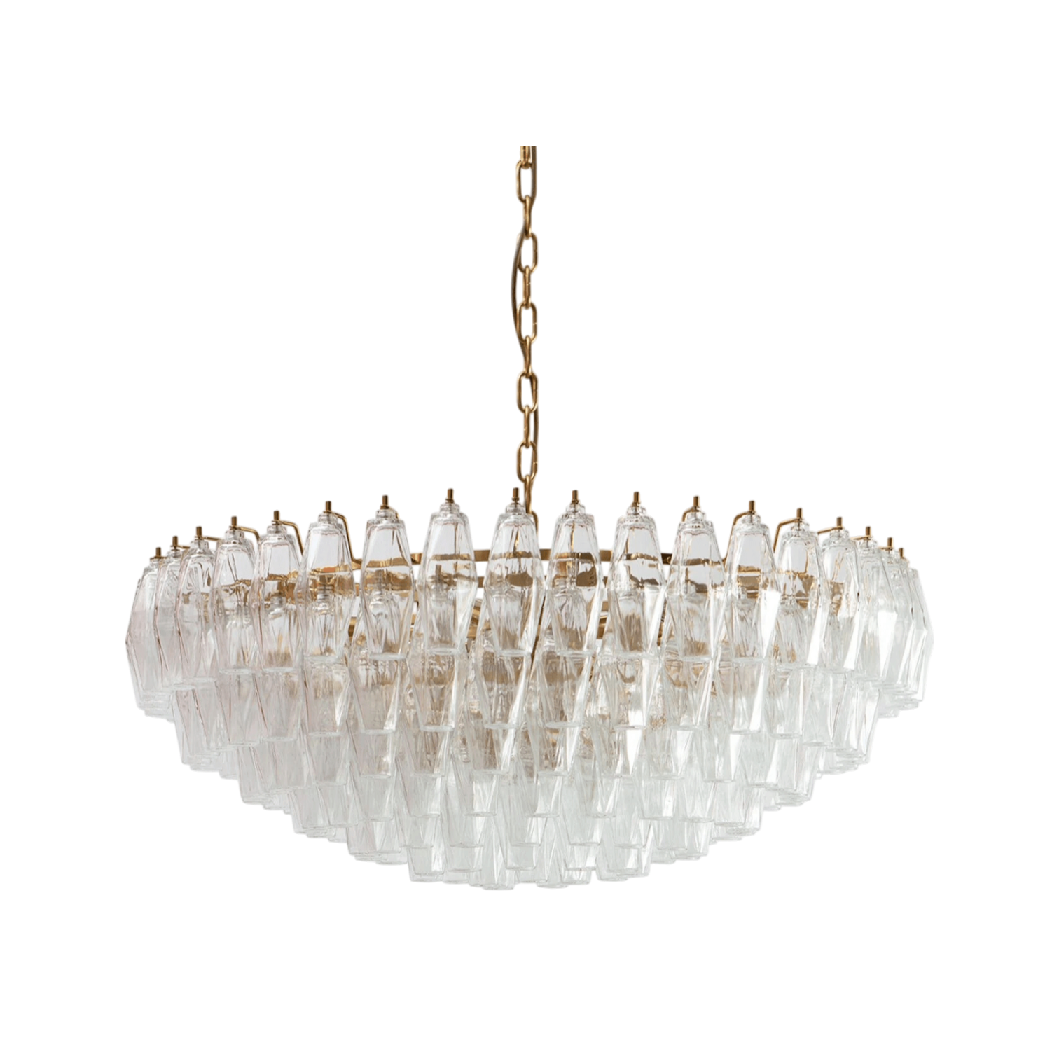 The Gioia Murano Sorrento Chandelier by SMITH&SMITH features tiered coloured glass on a brass-finish frame. A vintage-inspired statement piece for any space.