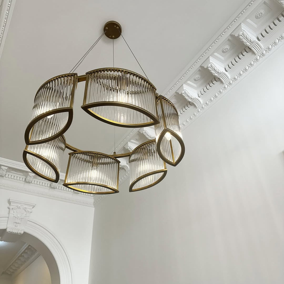 Glebe 6 Lamp Brass with Glass Rod Chandelier