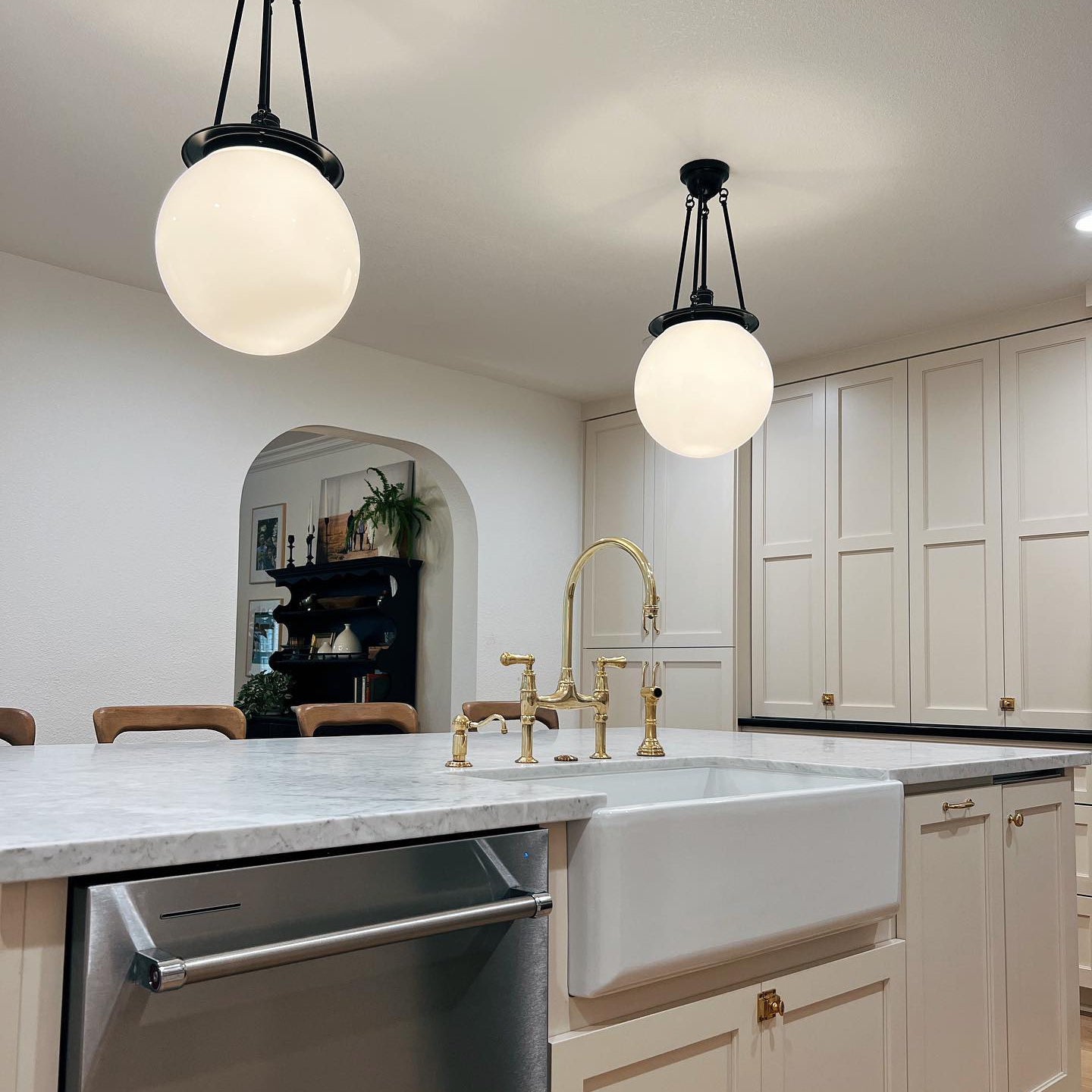 Inspired from American kitchens, this black and white lamp Is so perfectly suited above a kitchen island, but has many other uses. It comes with 3 sets of rods ensuring a suitable height/drop for almost any Australian kitchen.