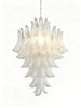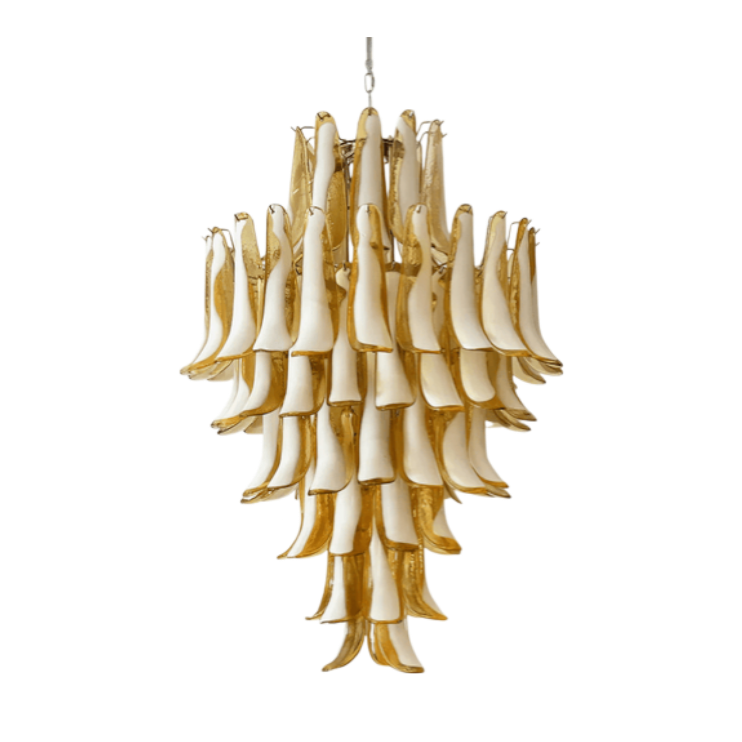 The Jolana Murano Glass Petals Pendant Lamp by SMITH&SMITH features layered glass petals in a flowing design. It gives off a warm, soft light. A beautiful statement piece for any room.