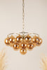 The Leila Murano Chandelier by SMITH&SMITH combines plated champagne glass globes with an elegant aged brass frame. The design brings a sophisticated feel to any space, enhancing it with charm and elegance.