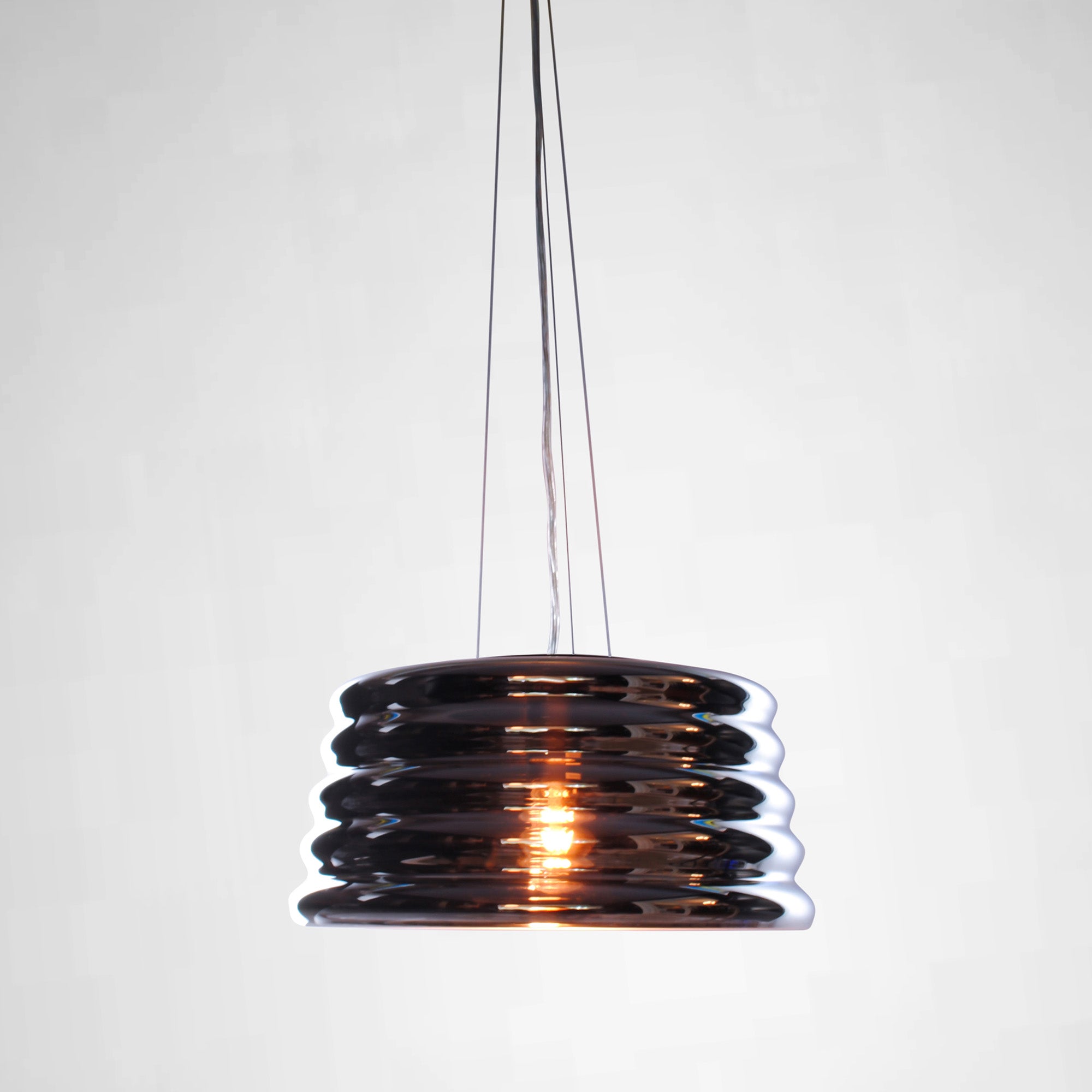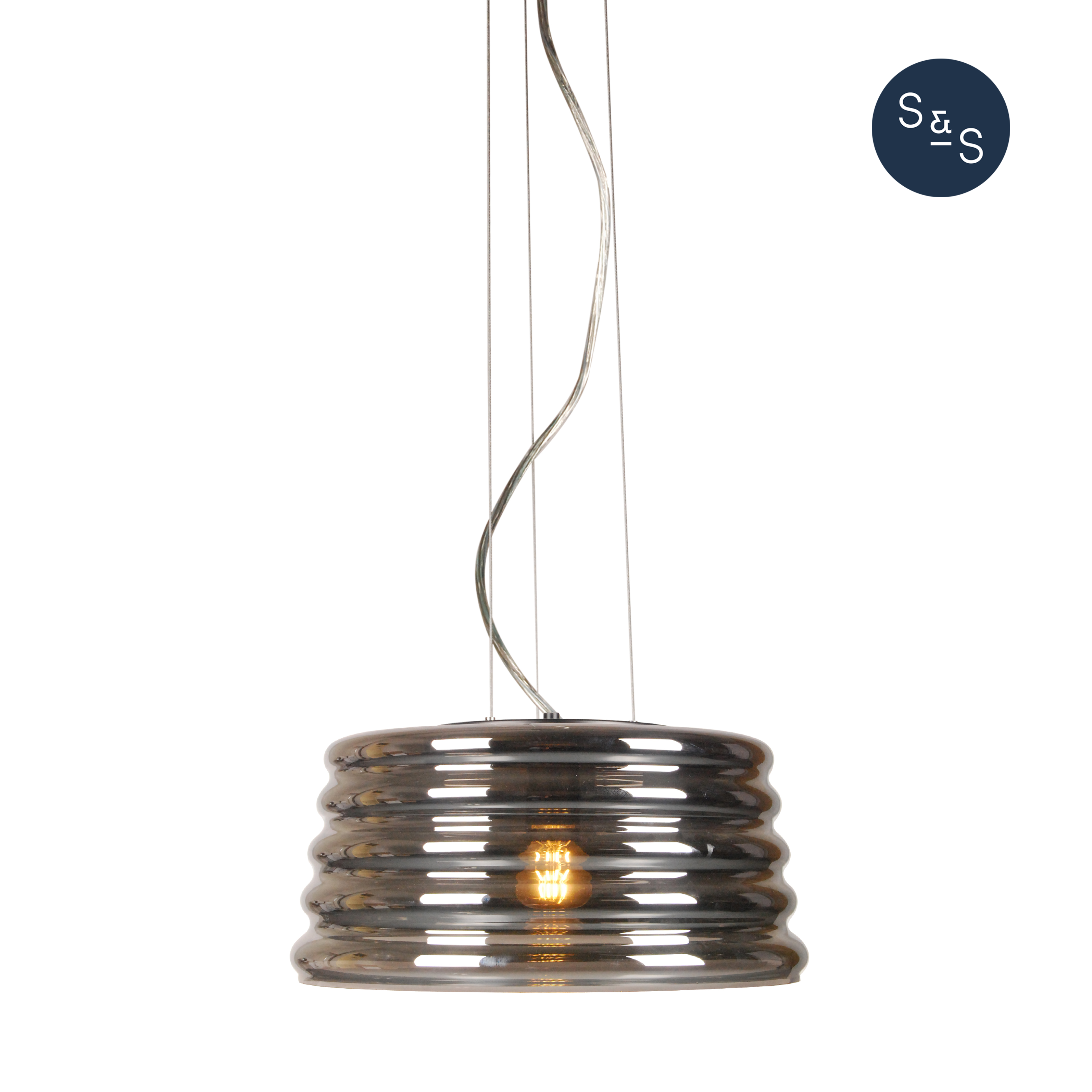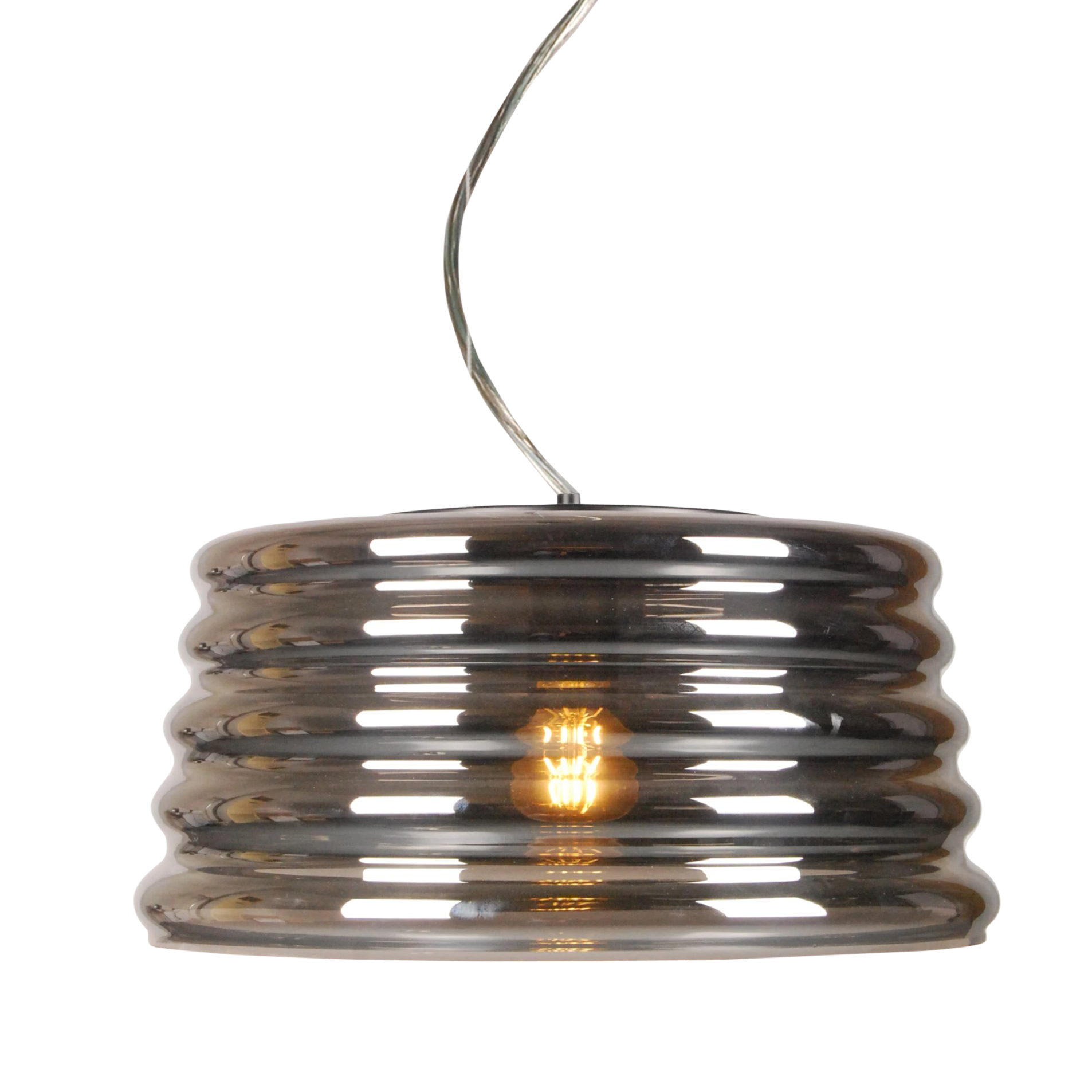 Inspired by an iconic part of our Australian landscape, the amazing 'Lennox' pendant lamp pays tribute to the corrugated iron that protects so many homes and buildings across Australia. This exclusive style comes with a hand-blown chrome-inspired glass when unlit, and then a darker warmer transparent feel when it is illuminated. It. Is. Simply. Stunning. Clearance stock, conditions apply.
