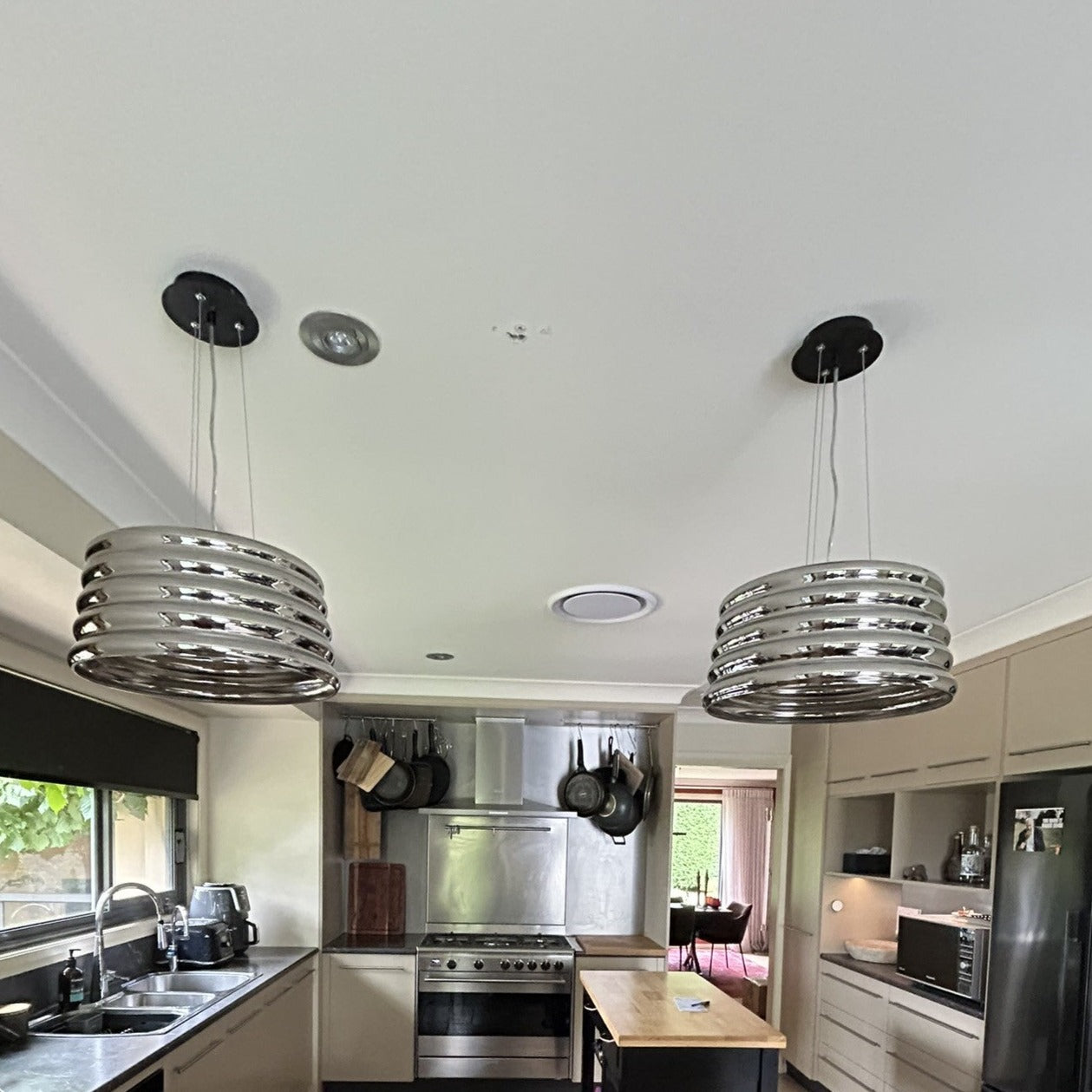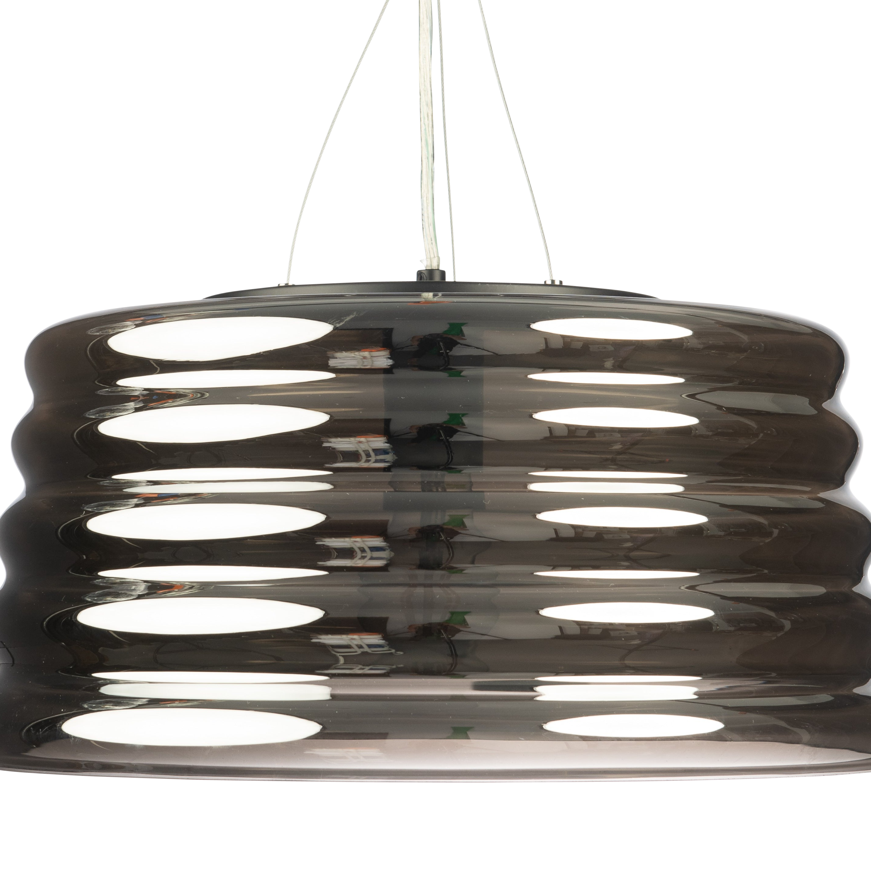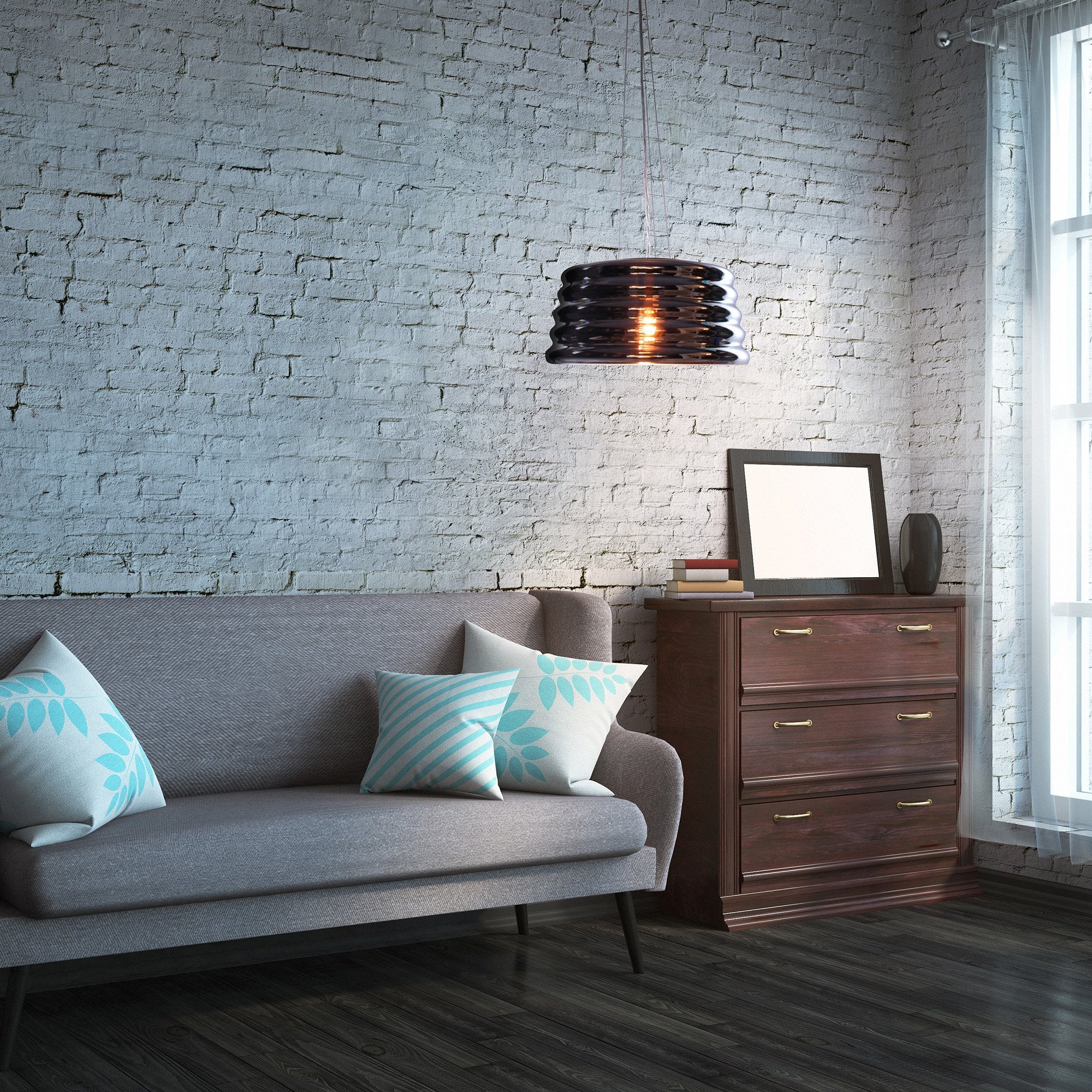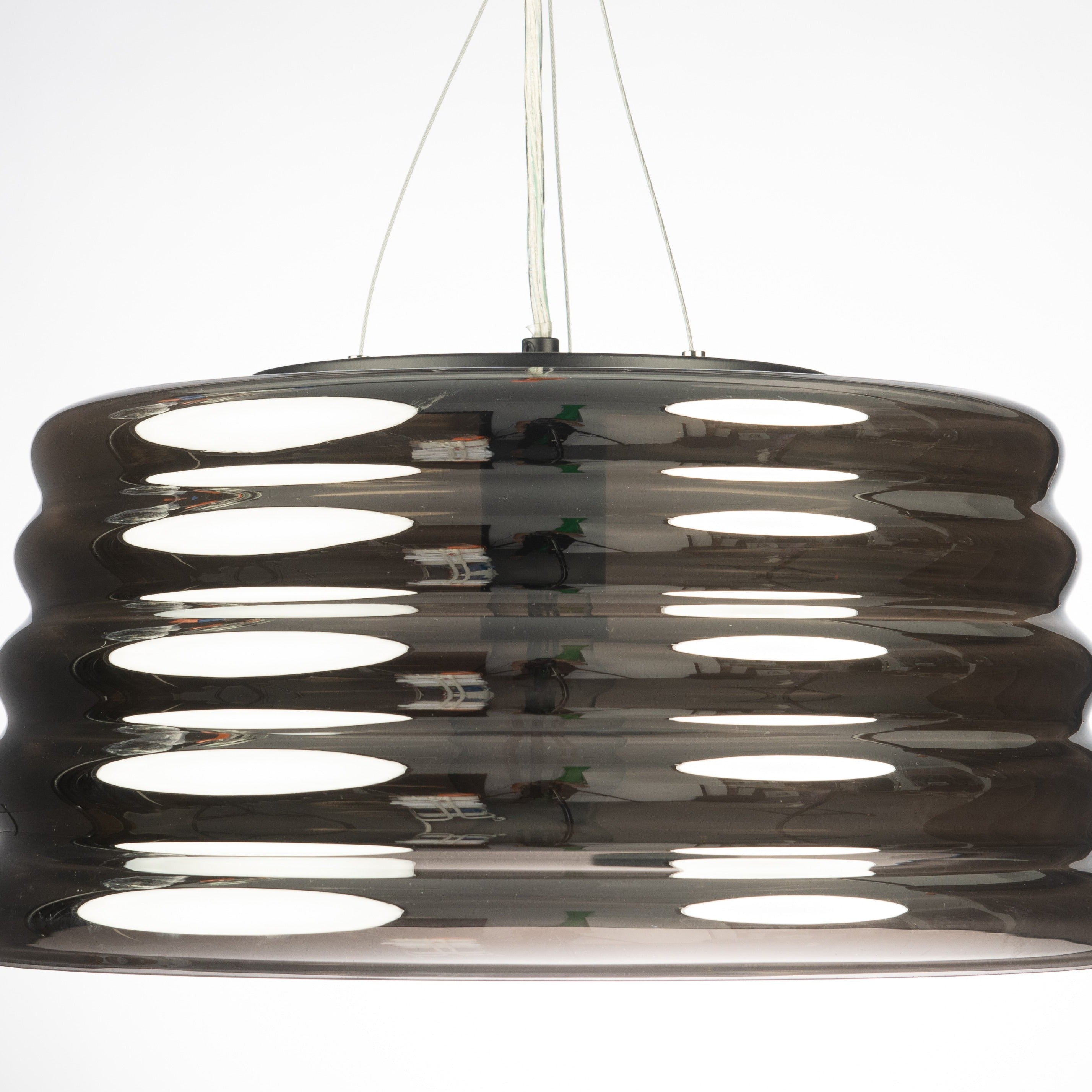 Inspired by an iconic part of our Australian landscape, the amazing 'Lennox' pendant lamp pays tribute to the corrugated iron that protects so many homes and buildings across Australia. This exclusive style comes with a hand-blown chrome-inspired glass when unlit, and then a darker warmer transparent feel when it is illuminated. It. Is. Simply. Stunning. Clearance stock, conditions apply.