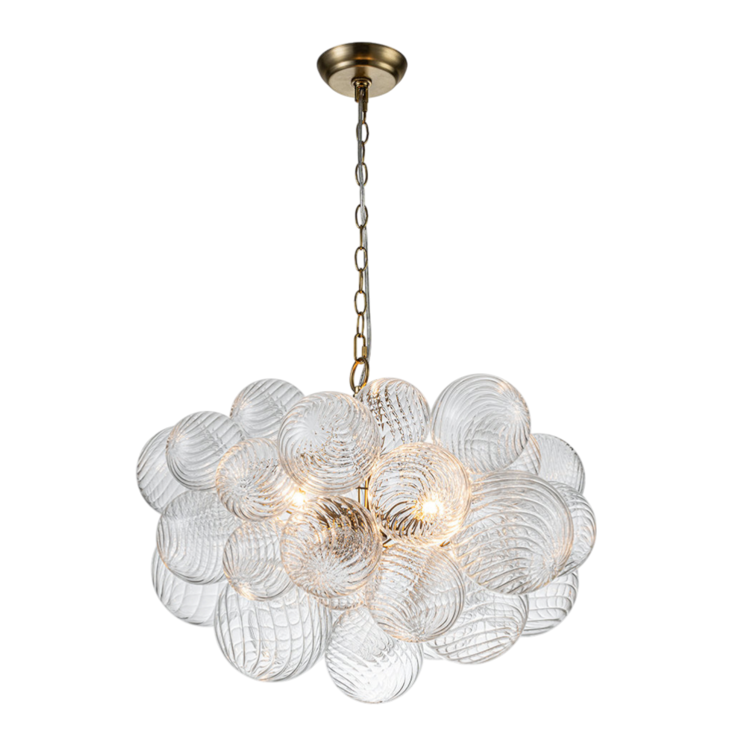 The Leonora Murano Glass Ball Bubbles Chandelier by SMITH&SMITH adds a touch of artistic style with circular glass shades of Murano glass with ripple patterns. It creates a gentle feel of warm light, perfect for any room or space.