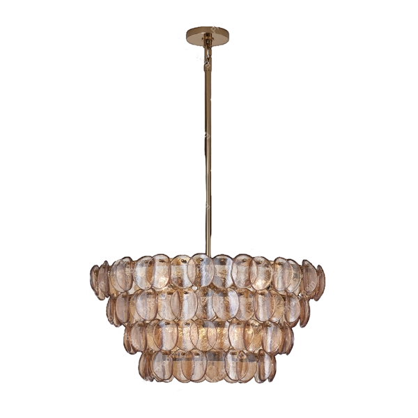 The Luce Murano Chandelier by SMITH&SMITH features the delicate pattern of fish scales in the form of Murano glass pieces that creates a warm presence. The textured glow finish is perfect for any space needing an elegant change.