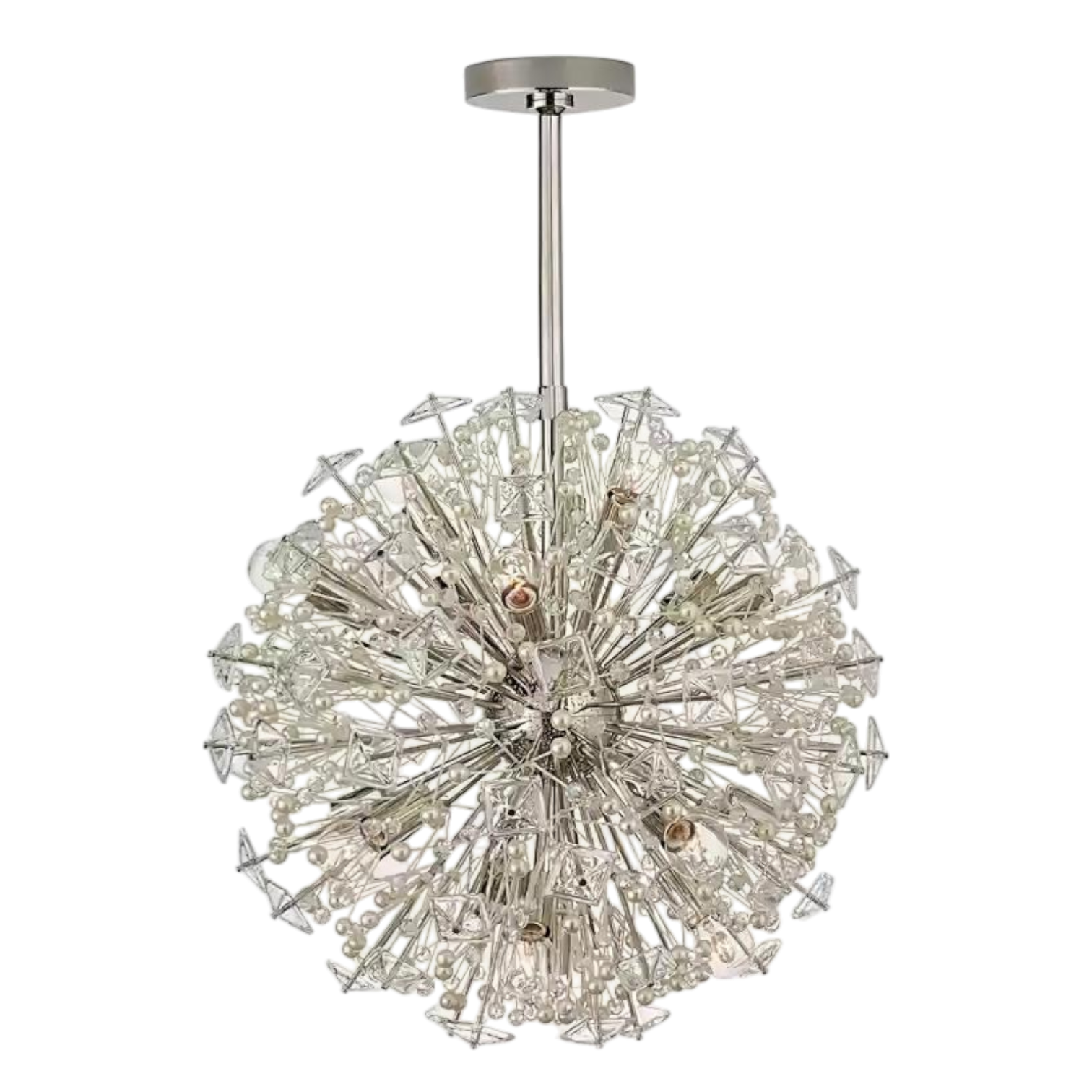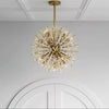 The Madalene Murano Dickinson Chandelier by SMITH&SMITH features a golden starburst design with crystal accents. It creates a warm, glowing light and comes in different styles. A striking piece for living rooms or entryways.