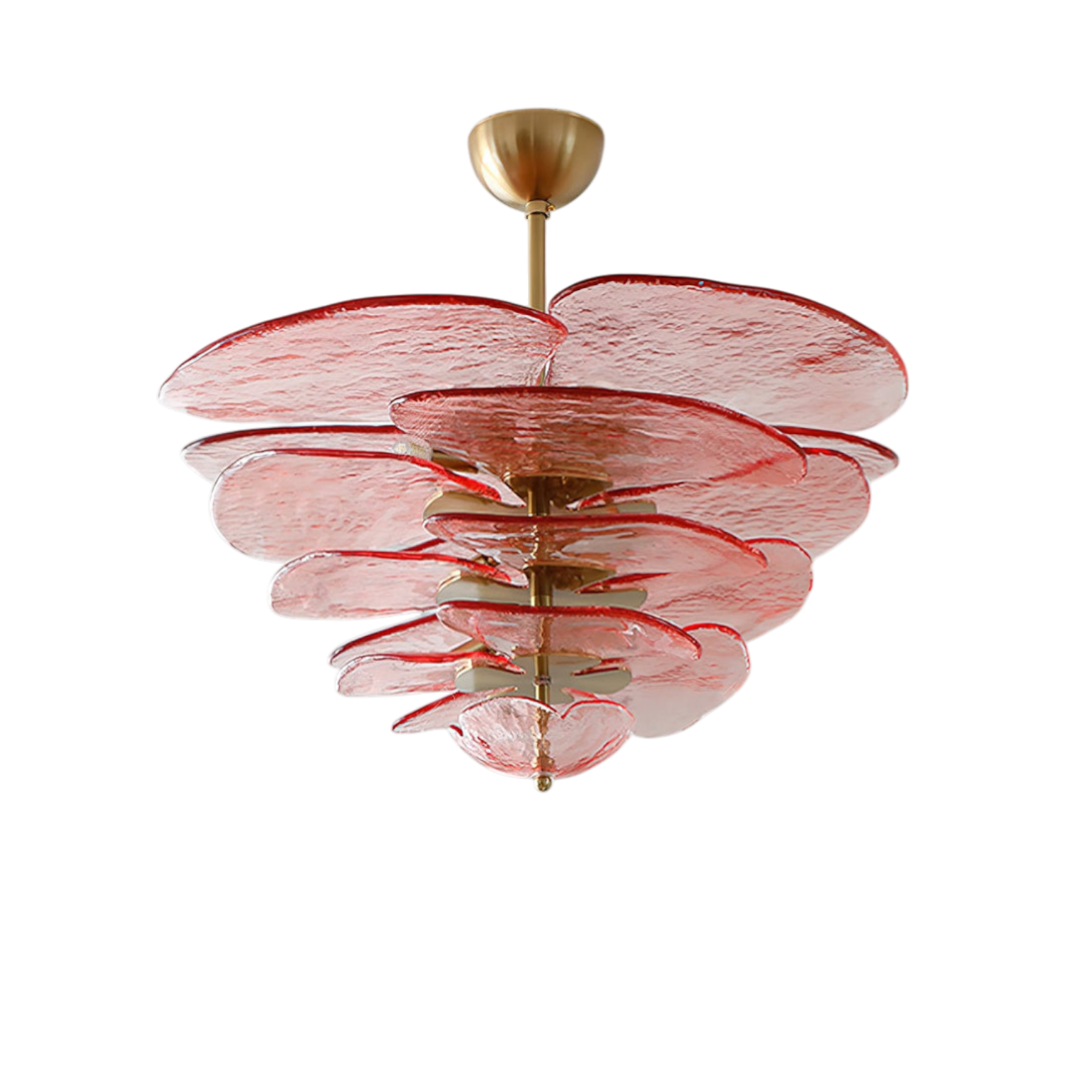 The Martella Petals Gold Murano Chandelier by SMITH&SMITH features stunning nature-inspired beauty and craftsmanship. The petal-like discs are formed in a gentle flow that casts a charming glow, making it a perfect centrepiece for dining rooms, living rooms, or entryways.