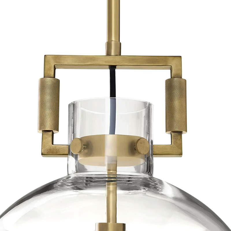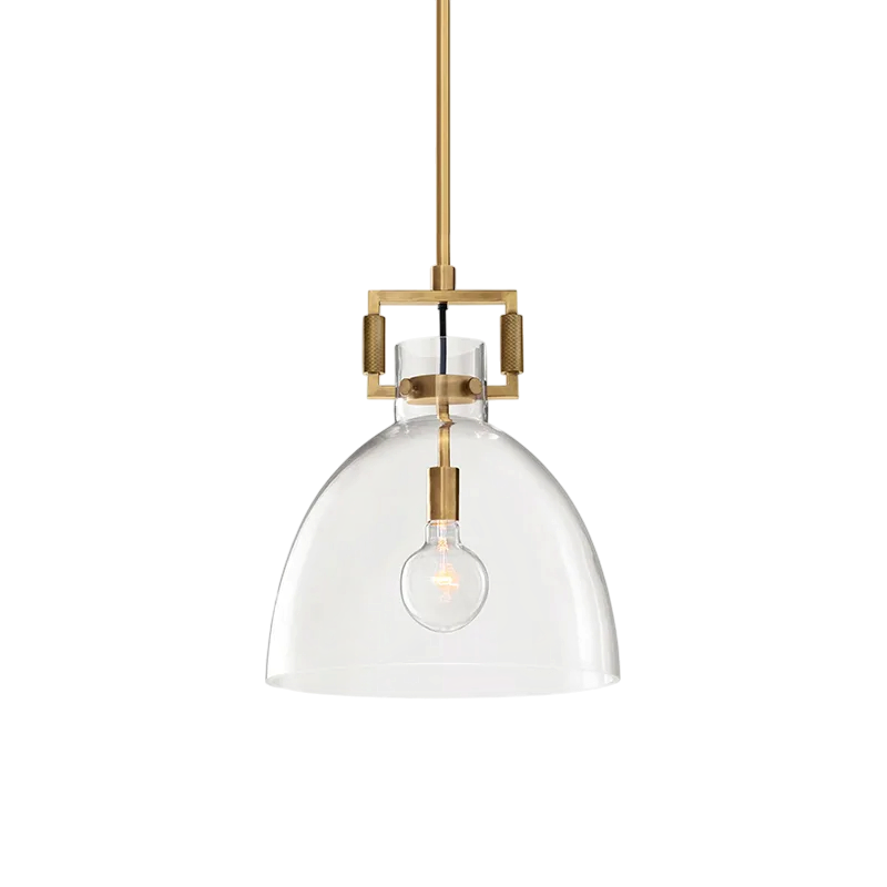 Handcrafted from real brass, this stunning lamp is available in two sizes, several brass finishes, and all supporting a quality clear glass dome. Drop length customised for your space and requirements.