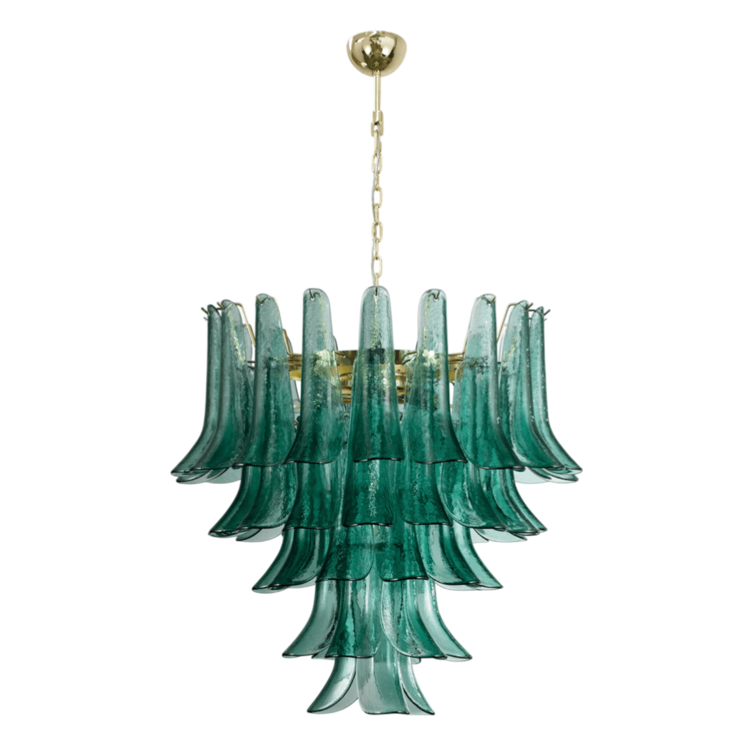 The Orsola Murano Petali Chandelier by SMITH&SMITH features a stunning piece of design with inspired aesthetics and luxurious craftsmanship. Blooming petals that add a touch of charm and elegance, perfect for grand dining rooms, foyers, or modern living spaces.