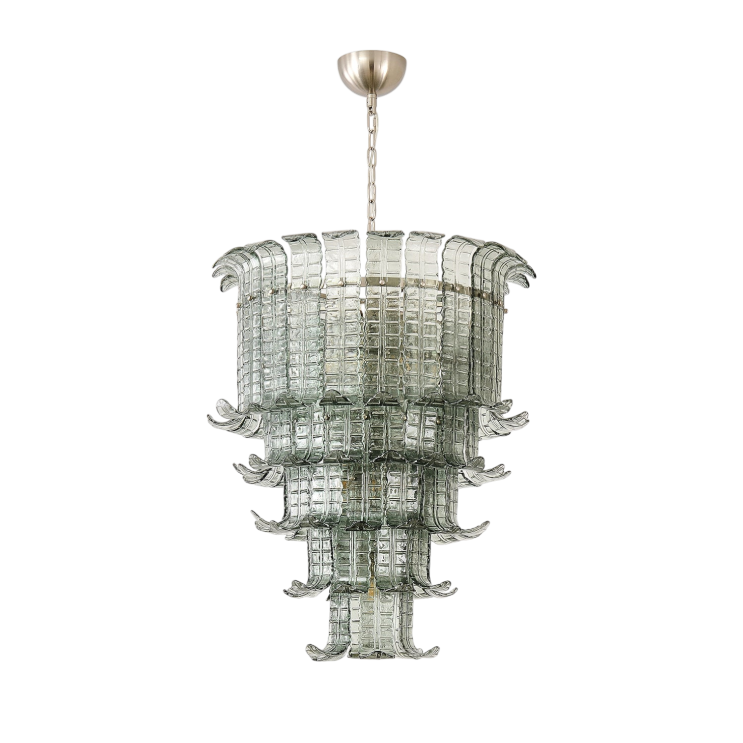 The Paola Murano Chandelier by SMITH&SMITH features layered handcrafted glass inspired by the graceful flow of a fountain. Each piece softly diffuses light for a warm glow. Perfect for both modern and classic interiors.