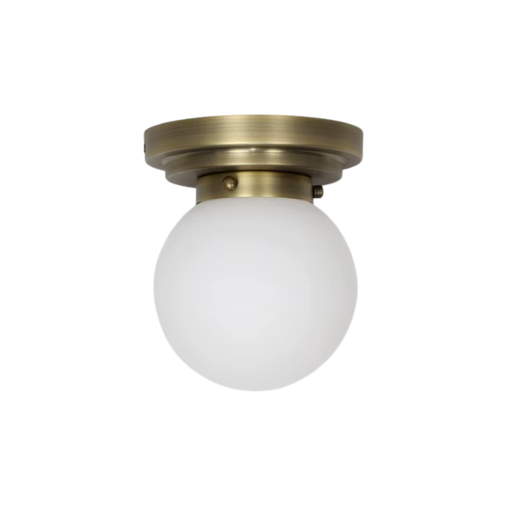Flush-mounted style made from brass, with choice of a matte white opal glass shade or a premium spanish alabaster shade,