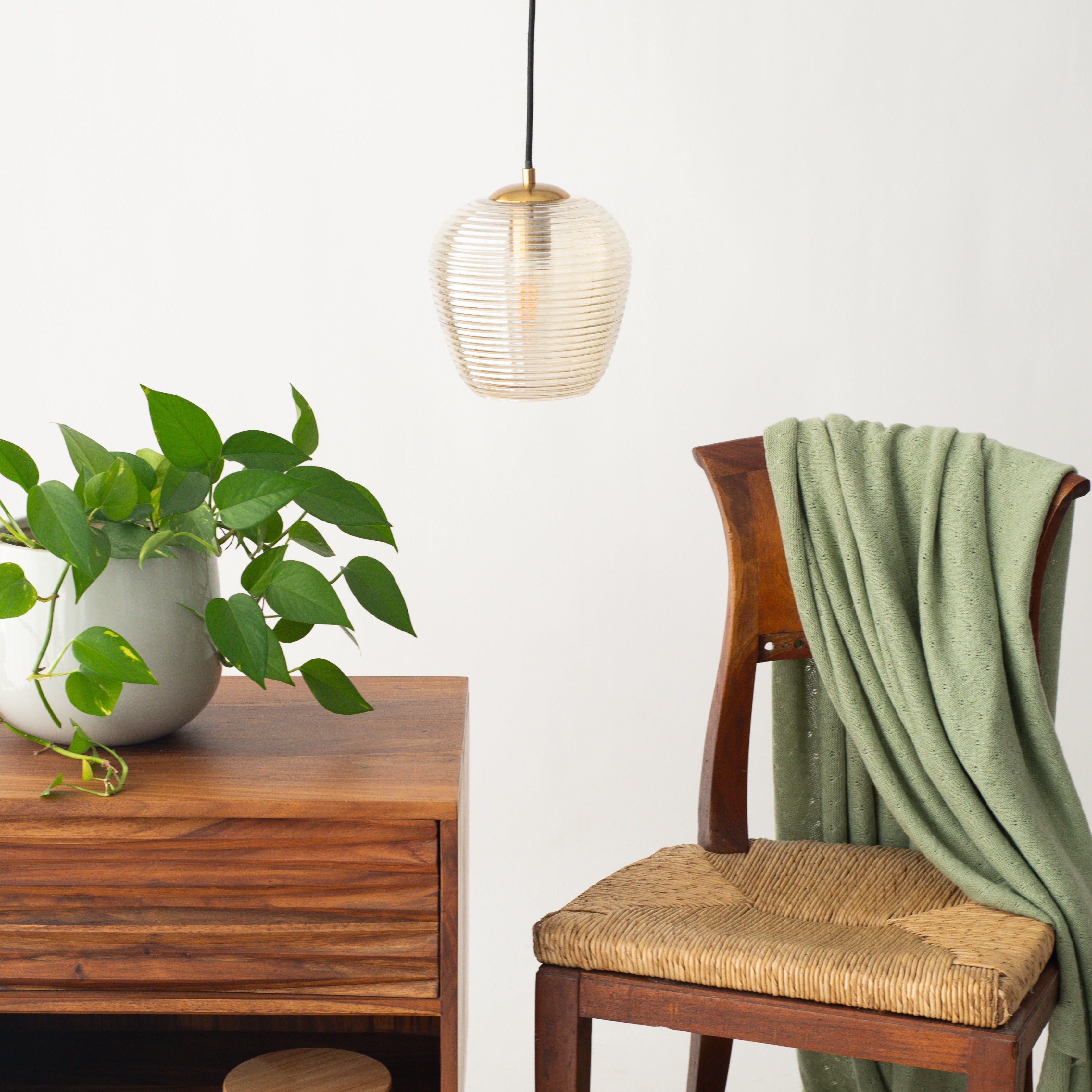 Made by SMITH&SMITH, this lamp features horizontal ribbed glass, in various glass and fittings colour options.