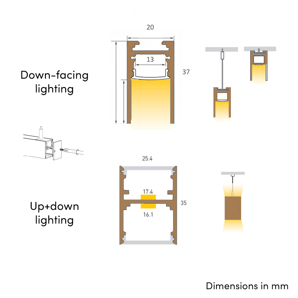 Option 2: H35mm x 25mm (Up+Down lighting)