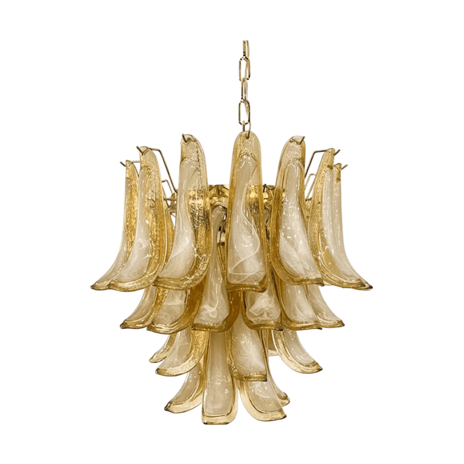 The Rosana Glass Murano Petals Chandelier by SMITH&SMITH features handcrafted glass petals arranged in an elegant layered design. With beautifully formed glass elements that reflect and diffuse light, it creates a soft, luminous glow. A refined statement piece, it brings style to dining and living spaces. Available in brass, nickel and selected other finishes. Contact us for more information.