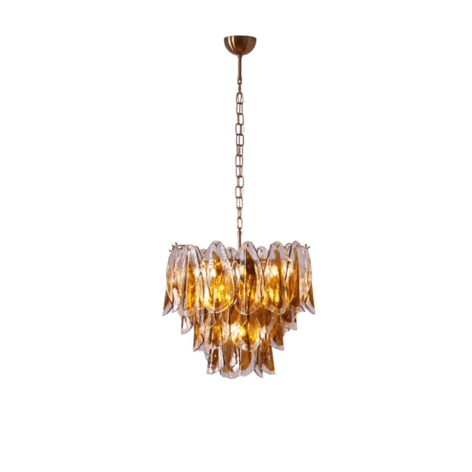 The Serenella Murano Glass Chandelier by SMITH&SMITH features Murano glass leaf pieces that catch lights like molten drops. Inspired by the beauty of autumn and nature, this piece brings elegance to any space.