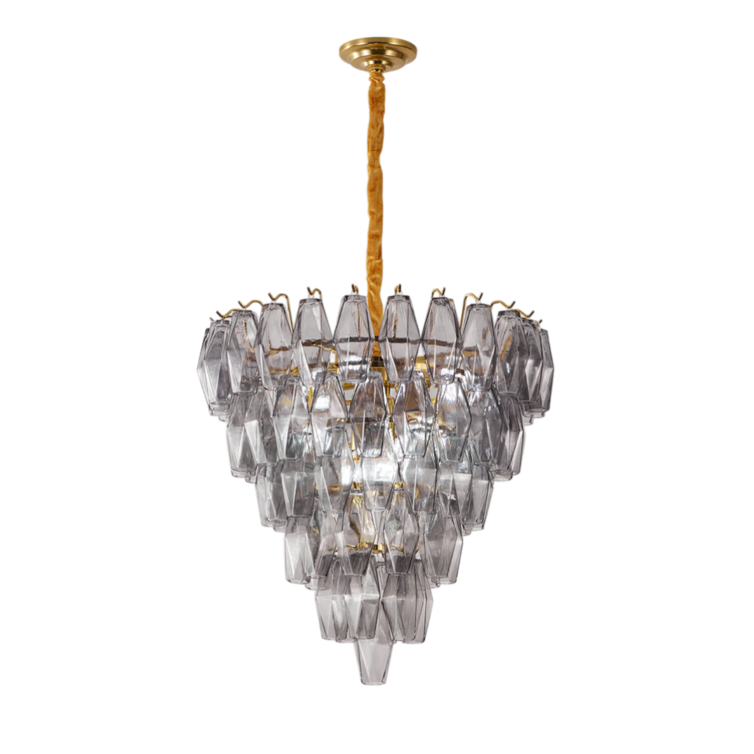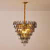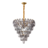 The Splendora Murano Empire Chandelier by SMITH&SMITH features the balance of elegance and edge by the layered tiers of hand-cut smoke grey crystal prisms. The inverted pyramid design instantly captivates the eye, perfect for grand foyers, staircases, or contemporary dining areas.