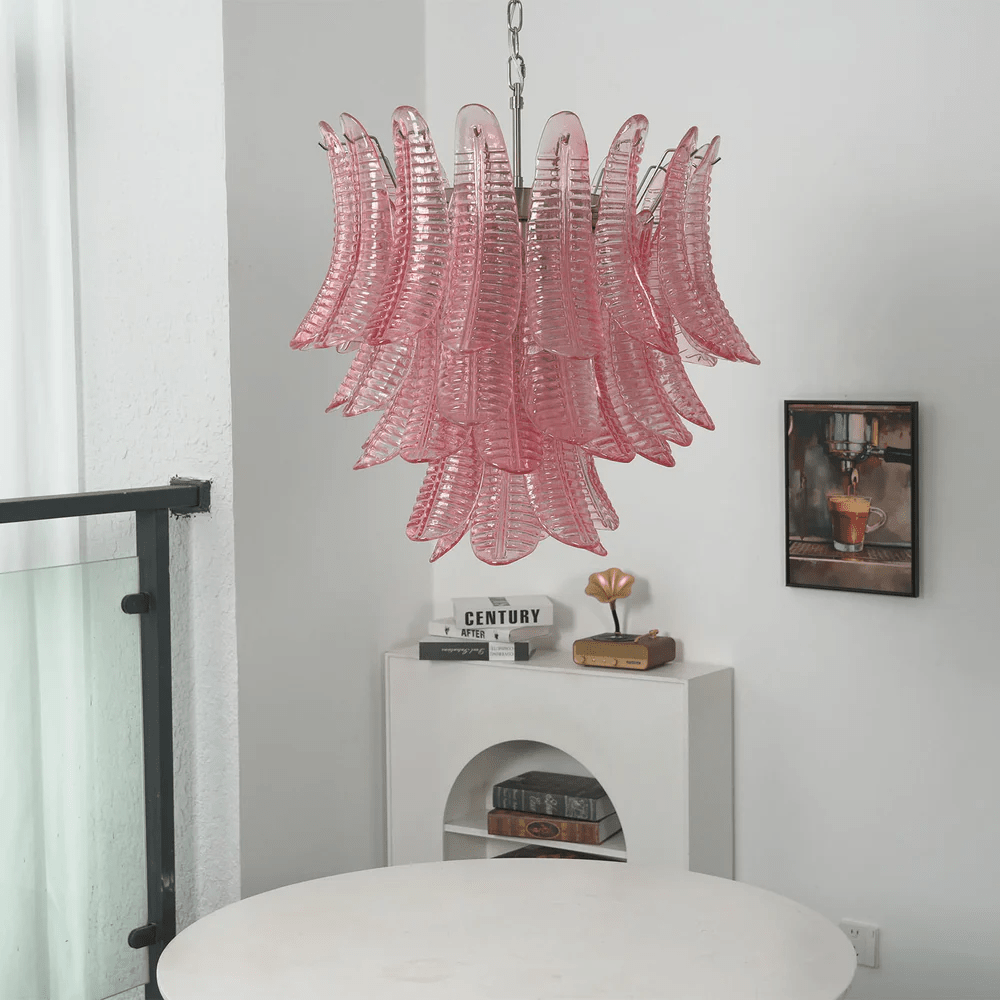 The Stacci Murano Petaline Prism Chandelier by SMITH&SMITH showcases handblown Murano glass shaped like soft petals. The surface catches light, giving that expressive feel, perfect for dining areas, bedrooms, or creative interiors.