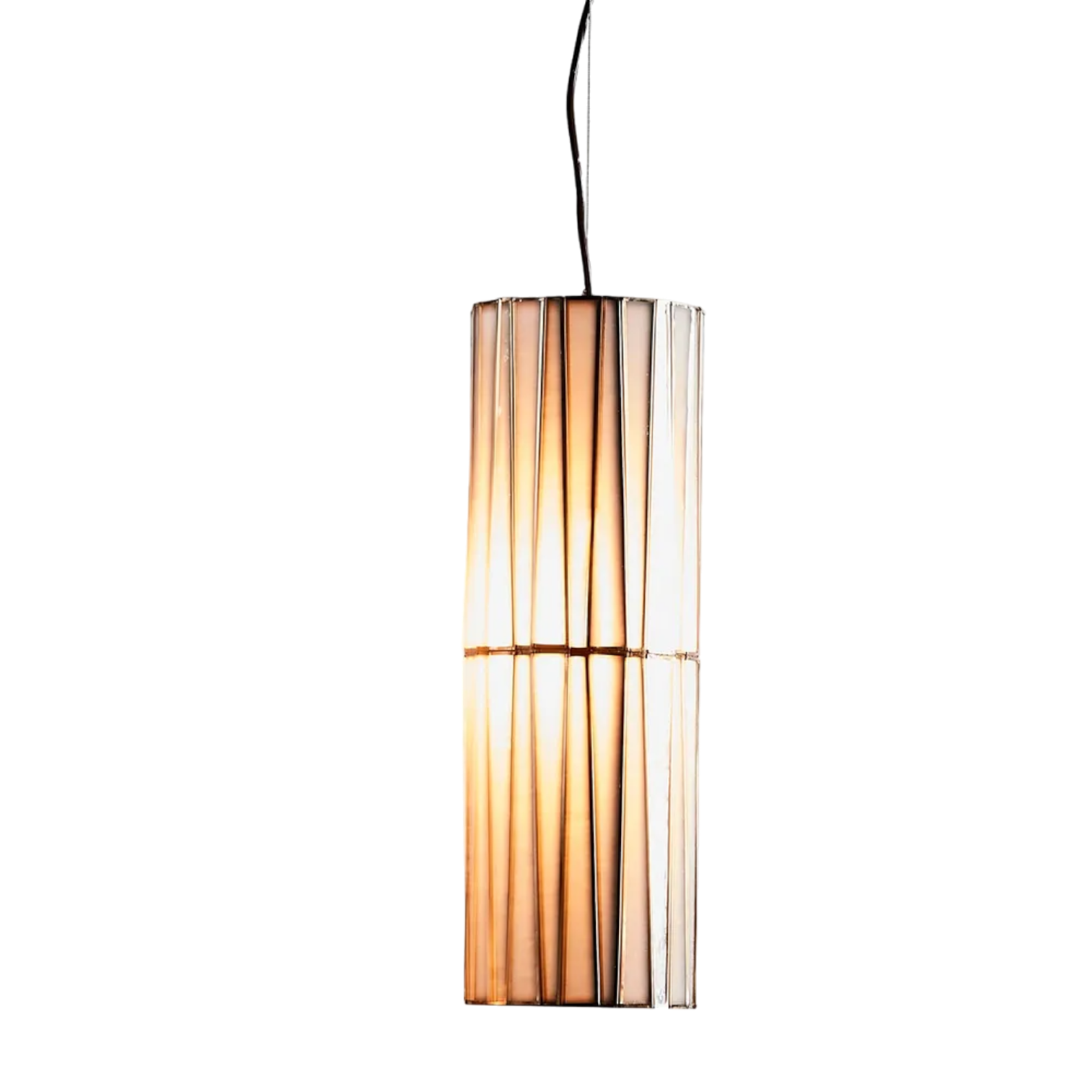 This stunning design is handcrafted, with each triangular piece of glass carefully hand-welded together to form this gorgeous cylinder-shaped hanging pendant lamp.