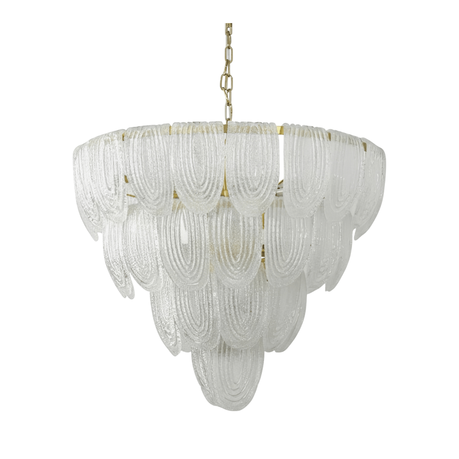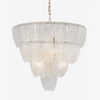 The Violetta Murano Layered Glass Petal Chandelier by SMITH&SMITH features cascading textured Murano glass panels arranged in layered tiers. The ribbed glass diffuses light, and the details add a delicate warmth. Designed to glow and bring light to luxury rooms and sophisticated interiors.