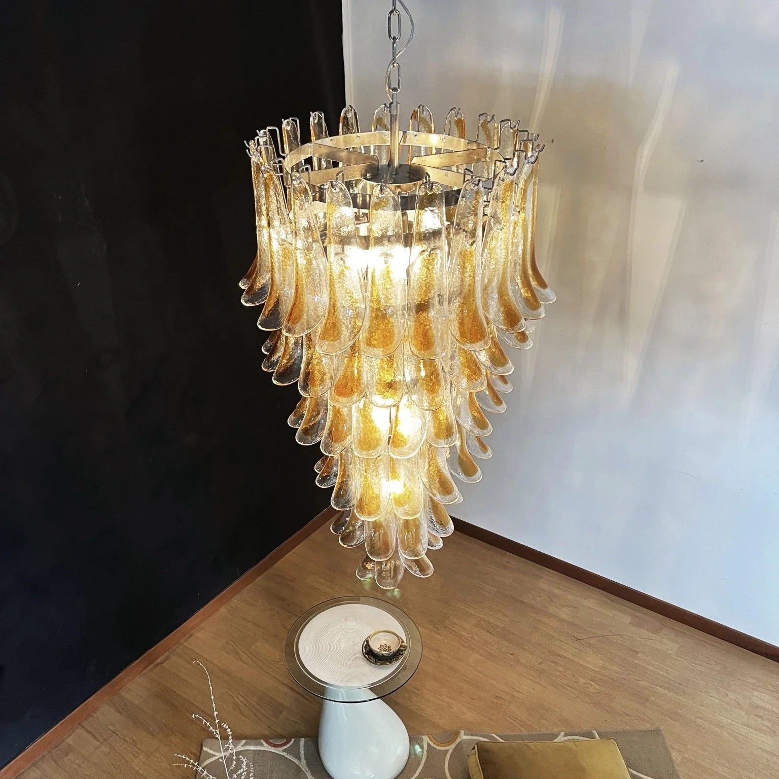 A warm dimmable chandelier for any space using luxurious hand-crafted murano glass made by SMITH&SMITH.