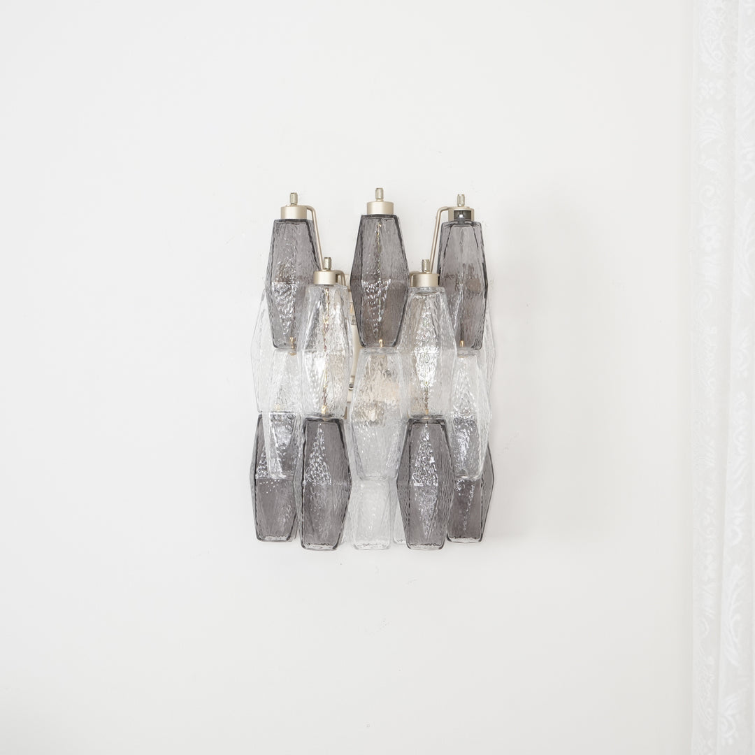 The Zeta Murano Rhombus Wall Lamp by SMITH&SMITH showcases a unique rhombus shape of handblown Murano glass that creates a geometric and stunning effect. This piece serves as a functional light and aesthetic appeal for your spaces.