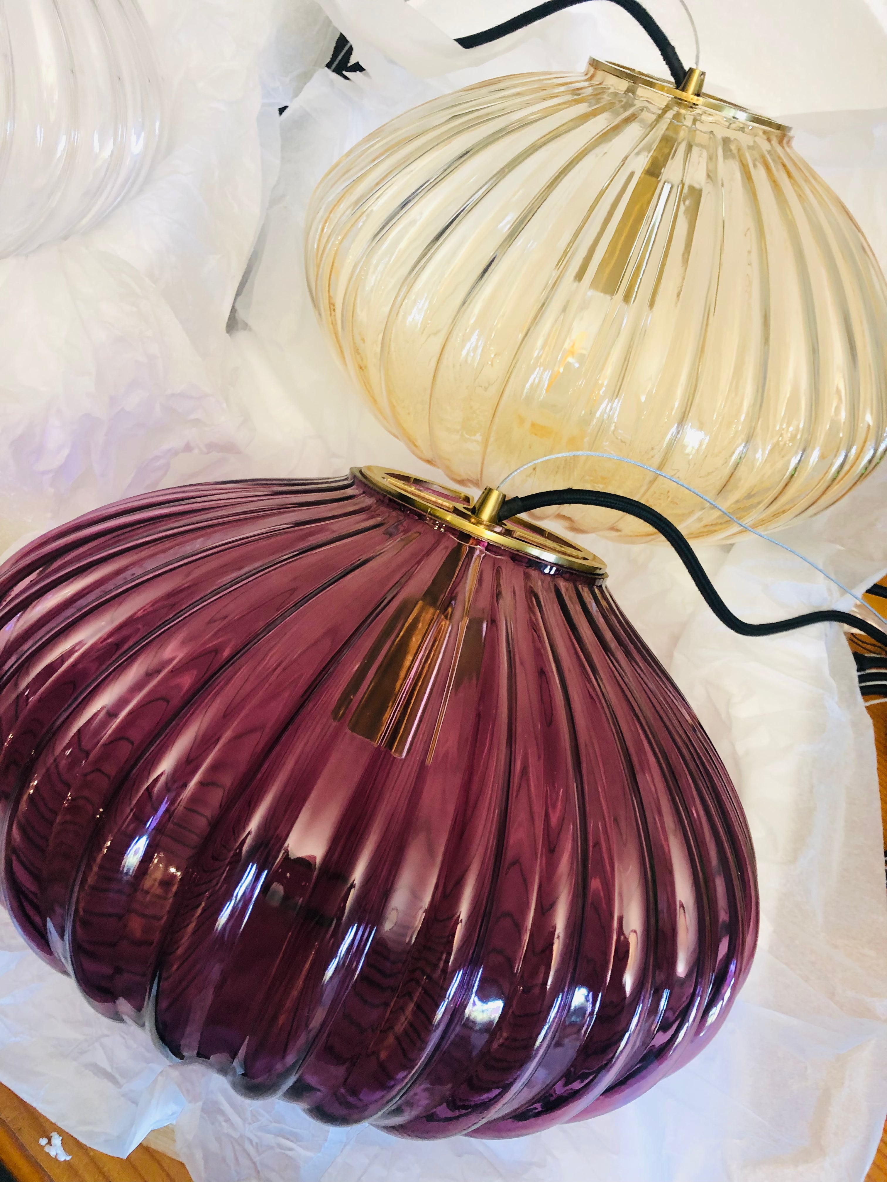 Zucca Mulberry Rippled Glass Pendant Lamp